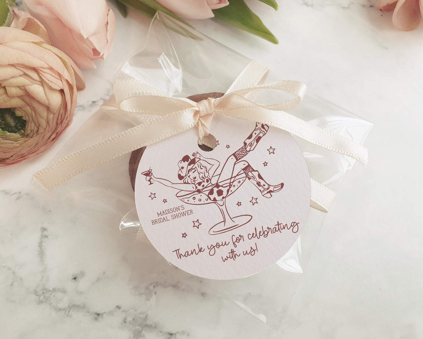 Burgundy Cocktails and Cowgirls Bridal Shower Favor Tags Template, Western Bridal Brunch With Bride Boots Bubbly Last Rodeo Nash Bash WP1042