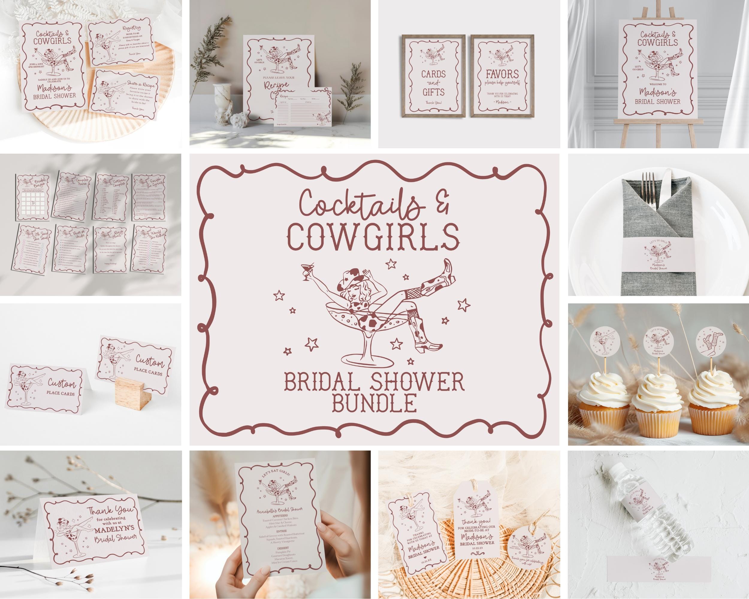 Burgundy Cocktails and Cowgirls Bridal Shower Bundle Template