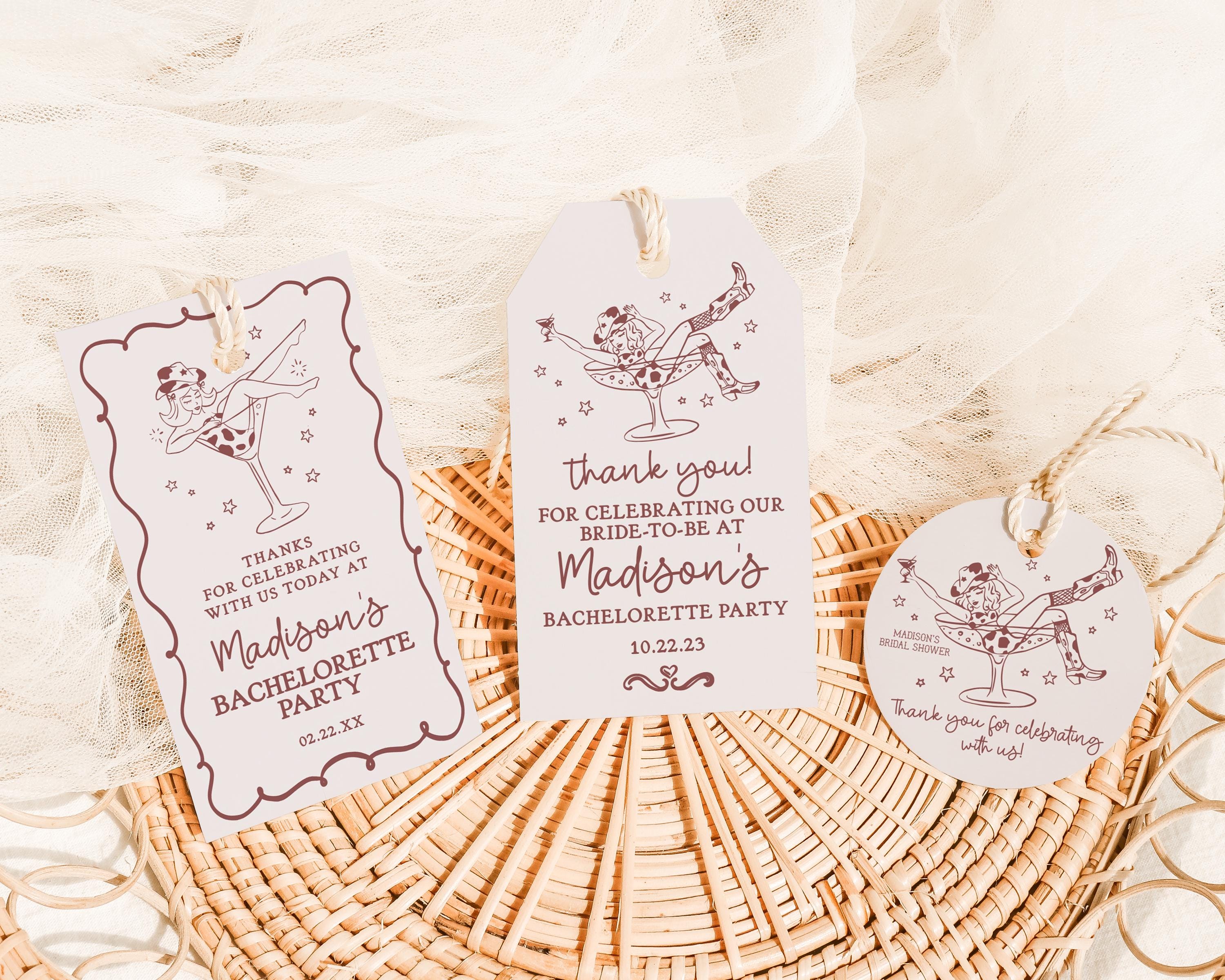 Burgundy Cocktails and Cowgirls Bachelorette Favor Tag Template, Western Nash Bash Brides Last Rodeo Bach Weekend Boots Bubbly Party WP1042