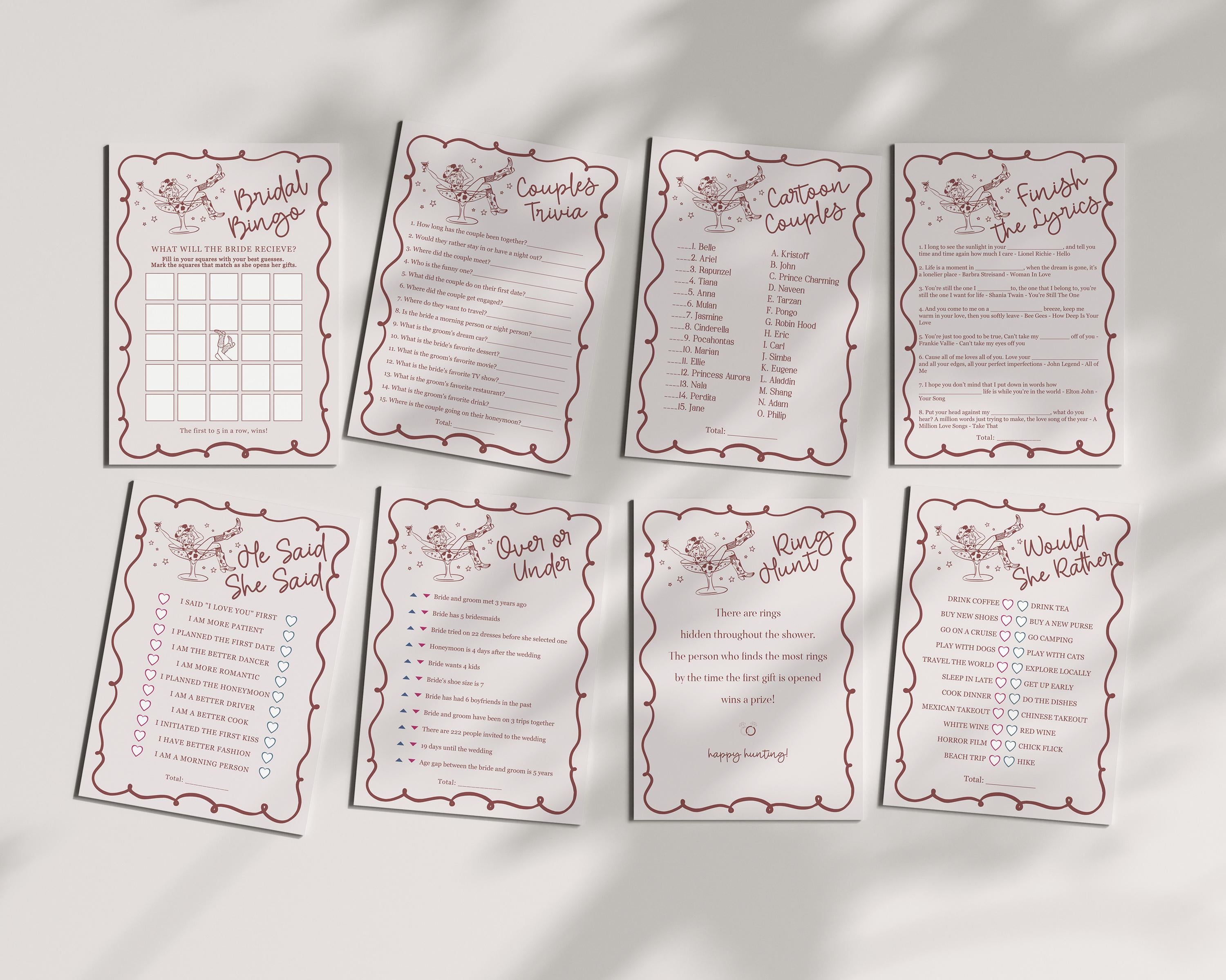 Burgundy Cocktails and Cowgirls Bridal Shower Games Template
