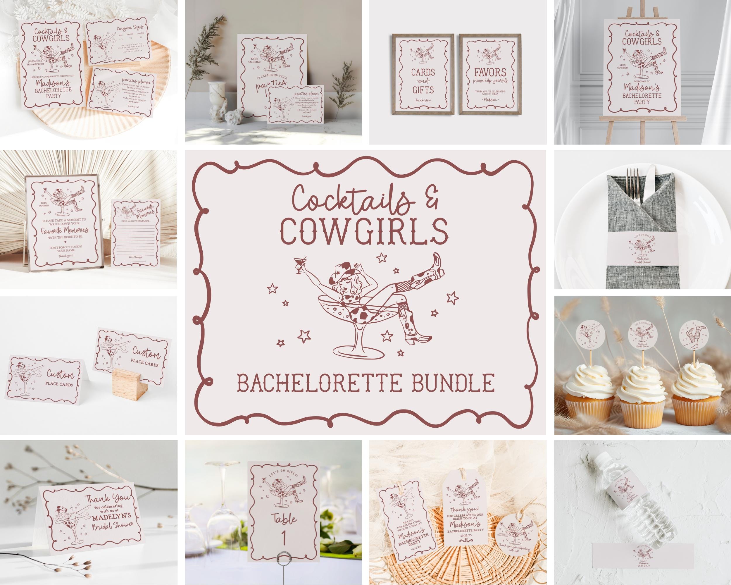 Burgundy Cocktails and Cowgirls Bachelorette Bundle Template