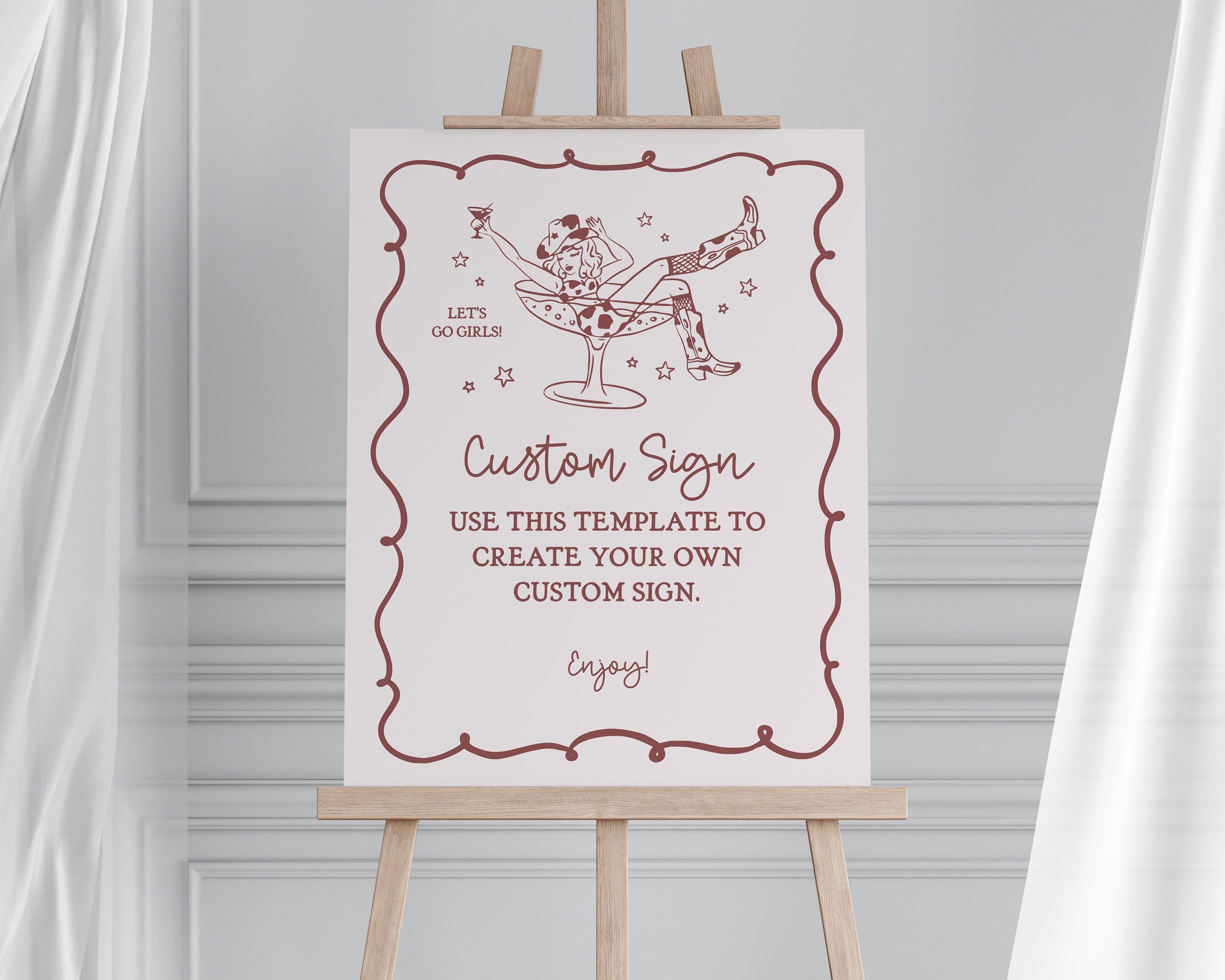 Burgundy Cocktails and Cowgirls Custom Sign Template