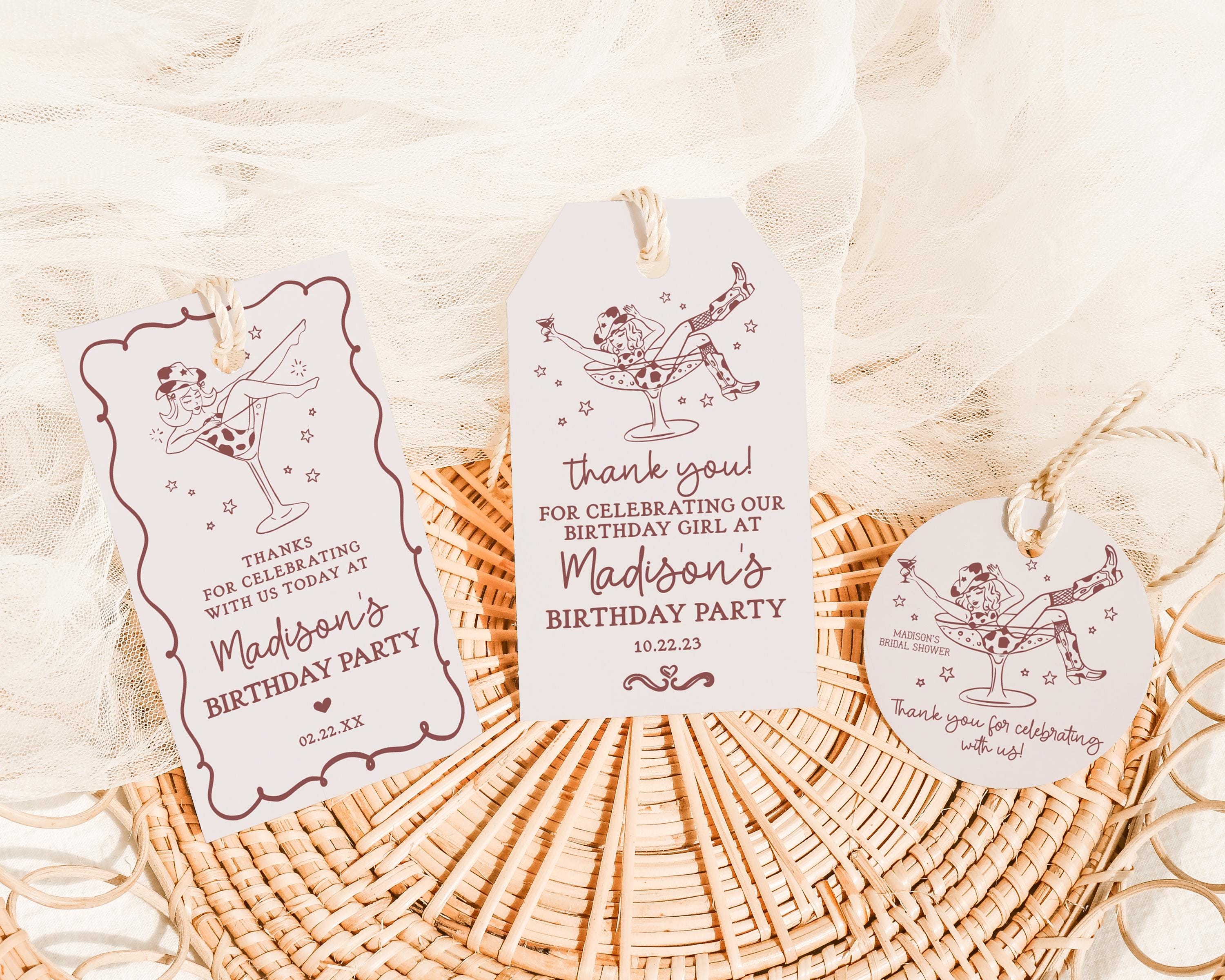 Burgundy Cocktails and Cowgirls Birthday Favor Tags Template, Nashville Birthday Weekend, Western Boots and Bubbly Birthday Party WP1042