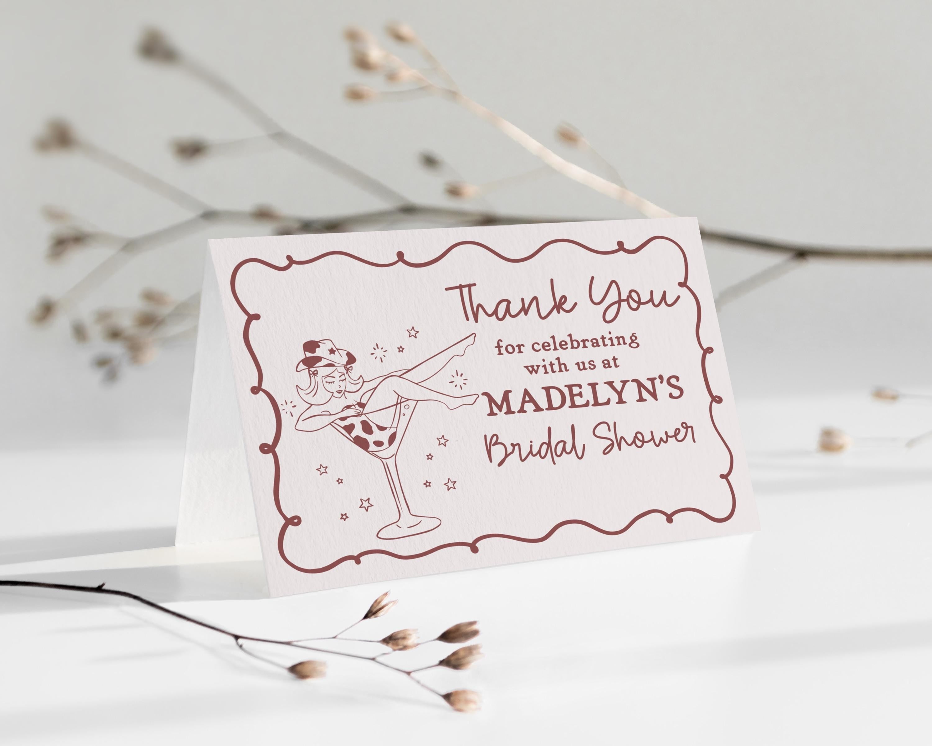 Burgundy Cocktails and Cowgirls Thank You Card Template, Western Bridal Shower Nashville Birthday Party Last Rodeo Bachelorette Party WP1042