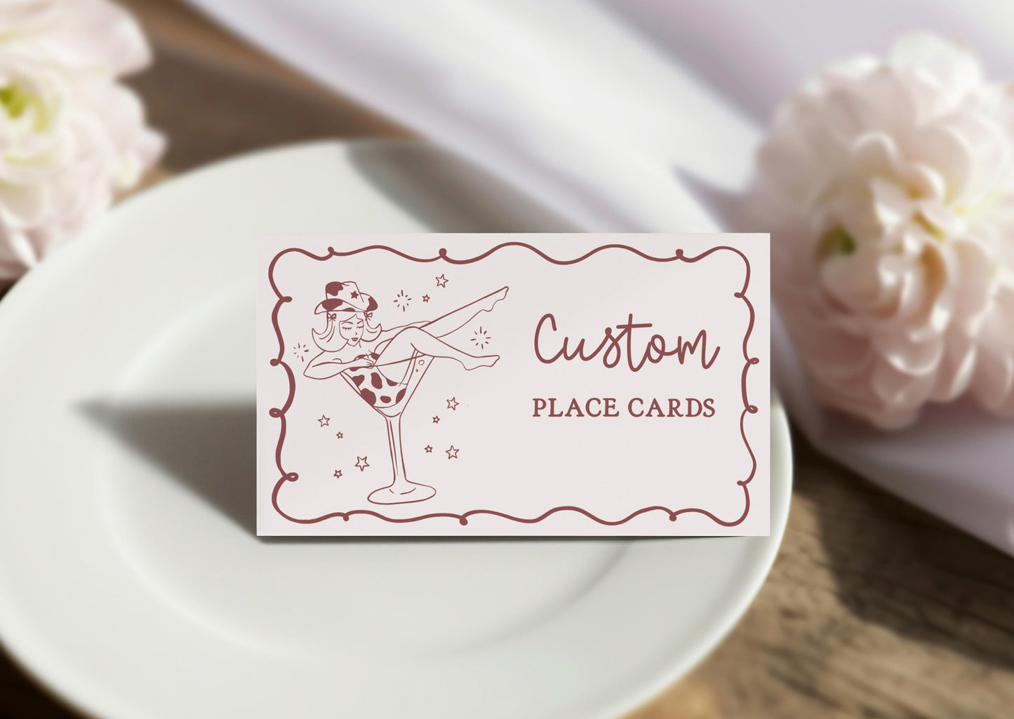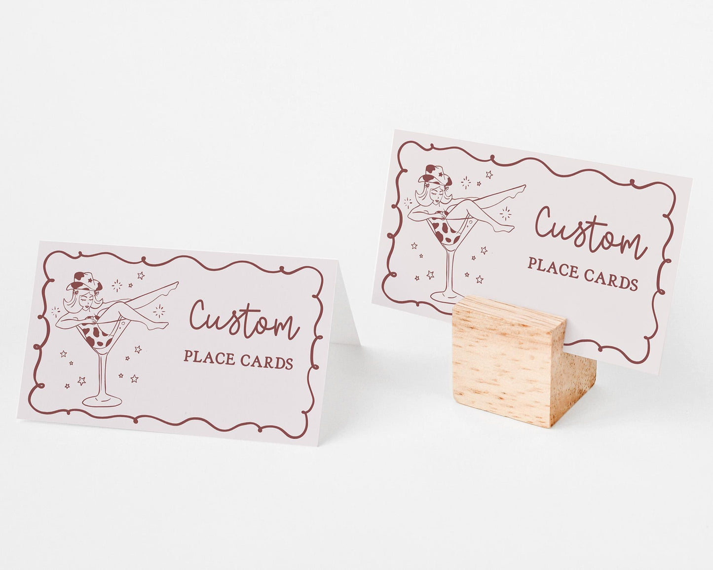Burgundy Cocktails and Cowgirls Place Cards Template