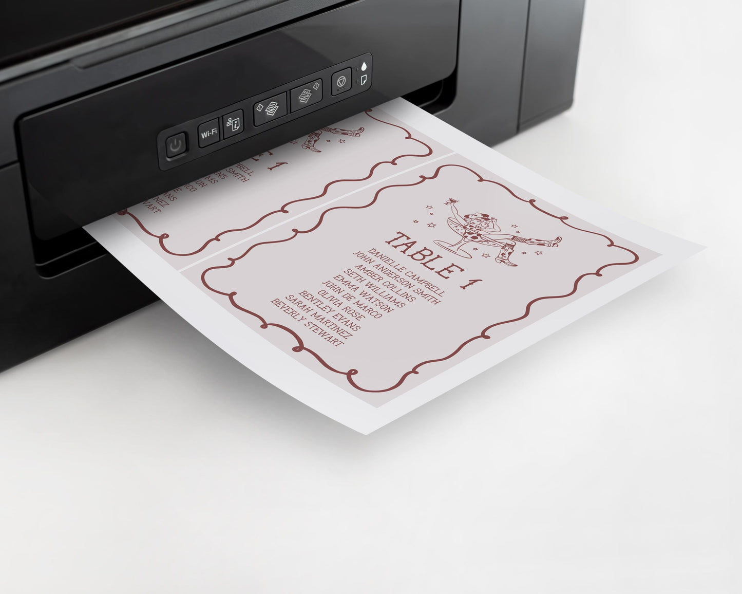 Burgundy Cocktails and Cowgirls Seating Chart Cards Template