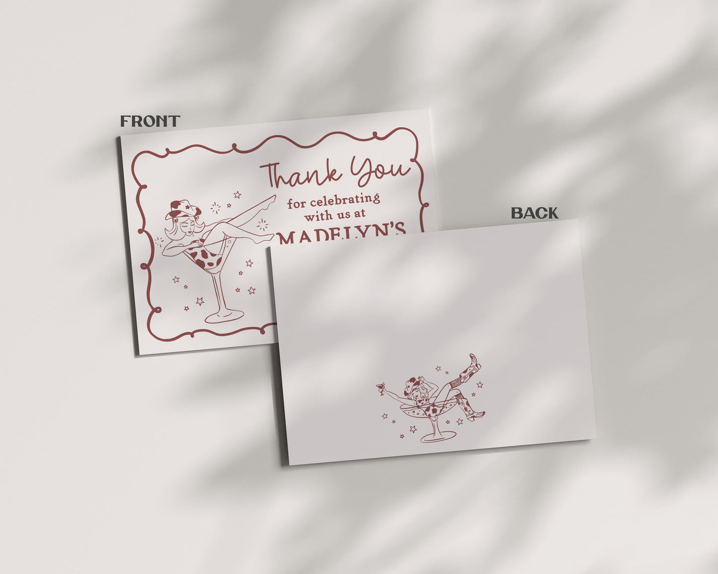 Burgundy Cocktails and Cowgirls Thank You Card Template