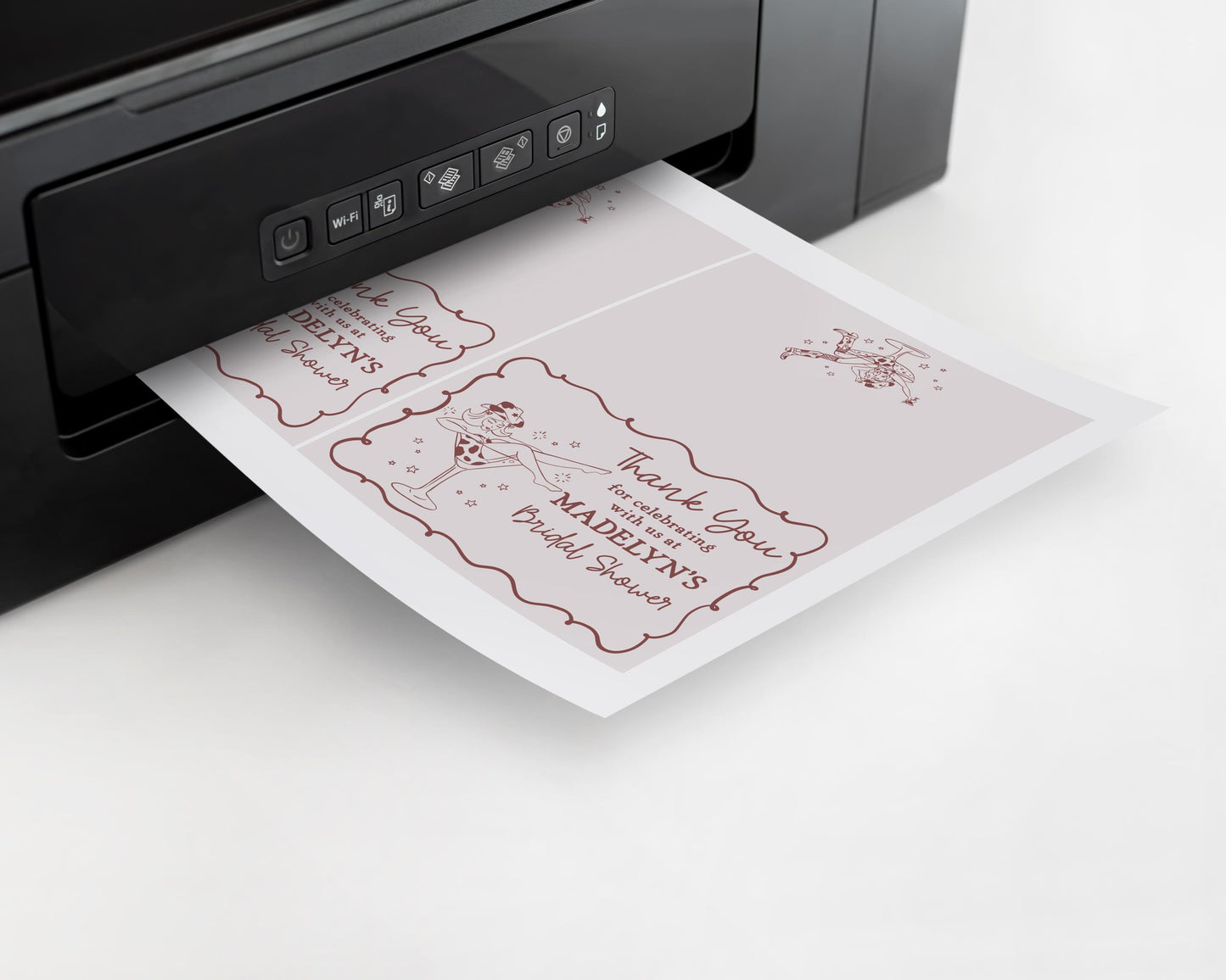 Burgundy Cocktails and Cowgirls Bridal Shower Favor Tags Template