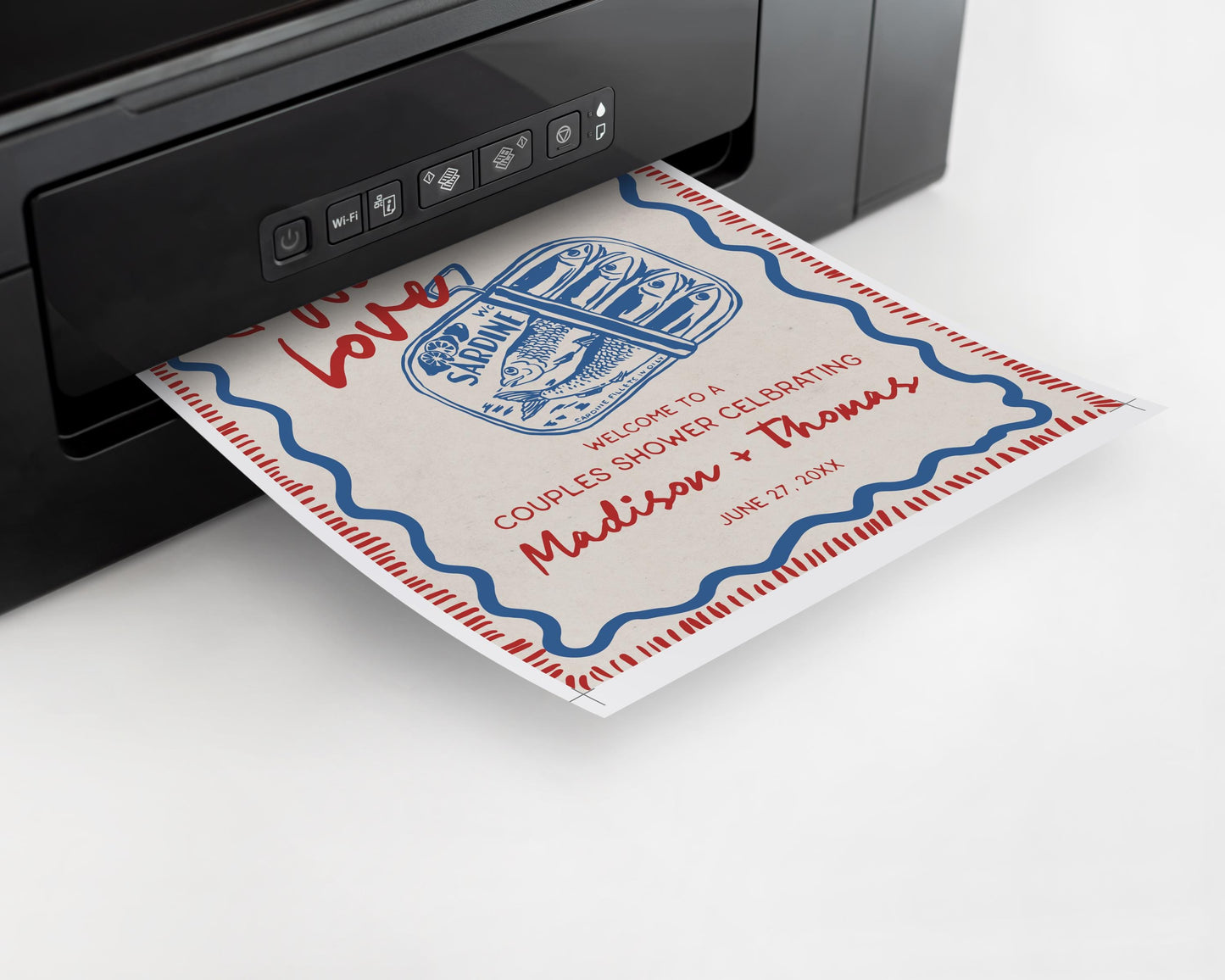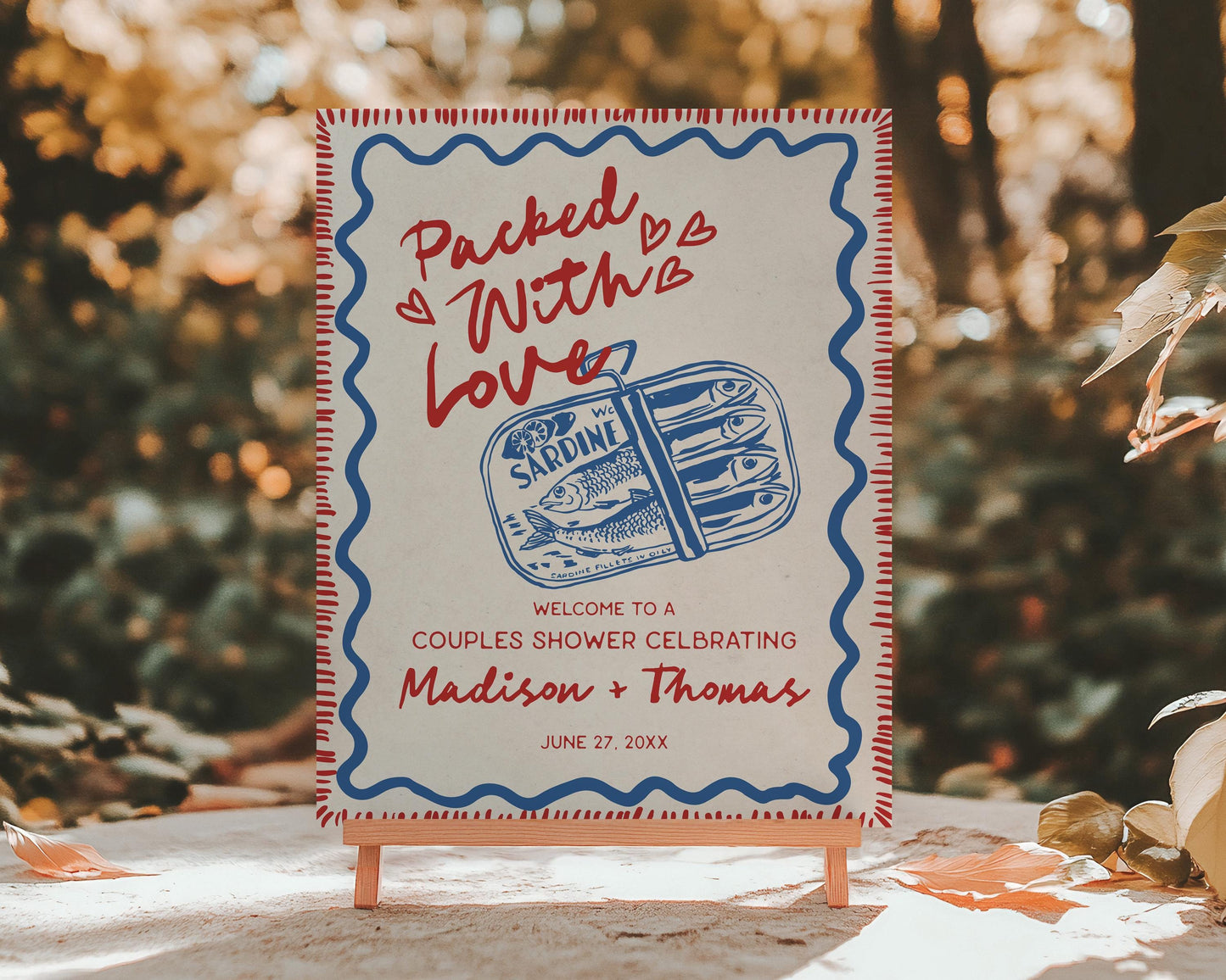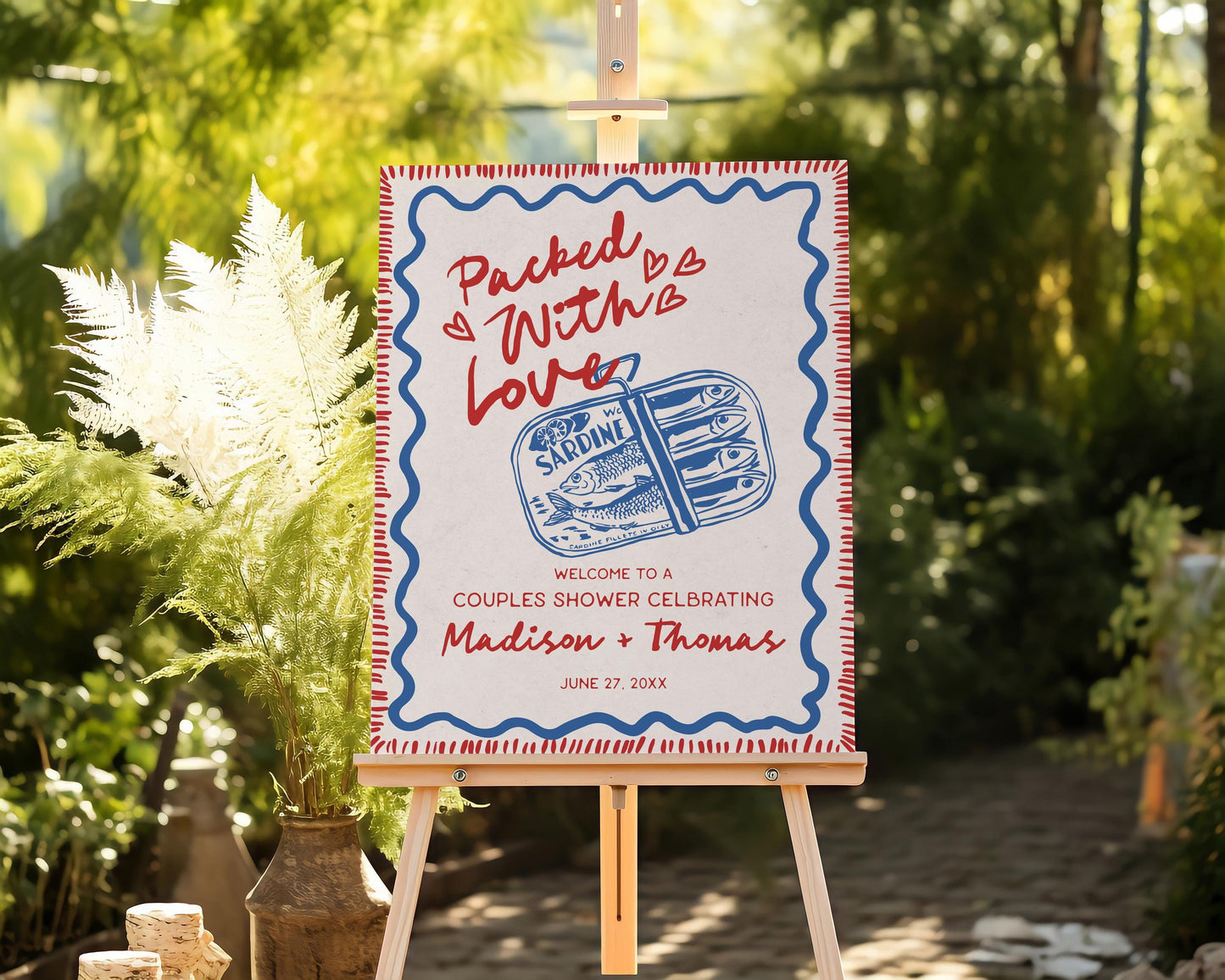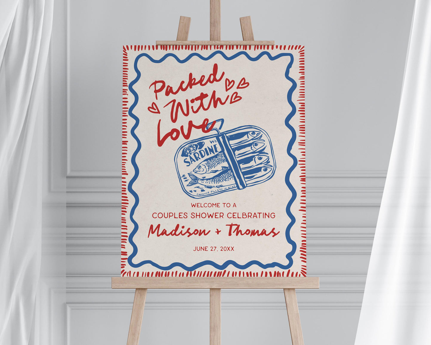 Canned Sardines Couples Shower Welcome Sign Template, Tinned Can Fisherman Bridal Shower, Packed with Love Retro Nautical Fisherman WP1036