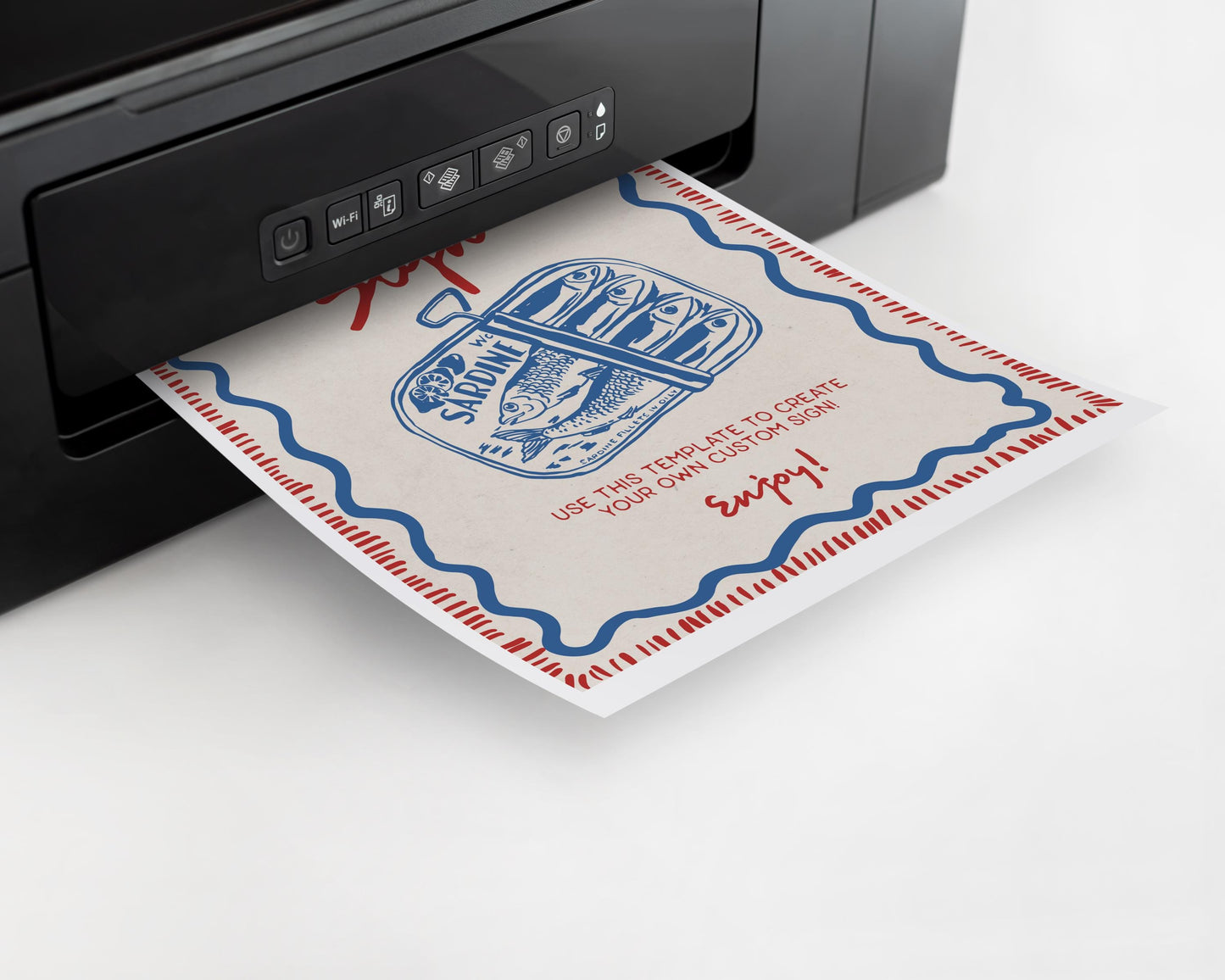 Canned Sardines Cards & Gifts Favors Sign Printable Template