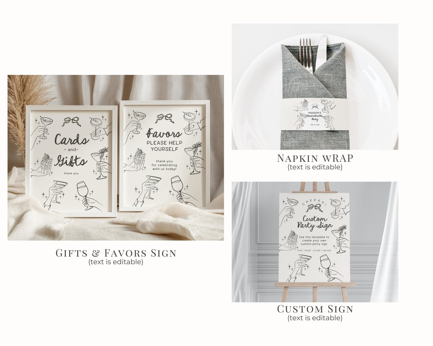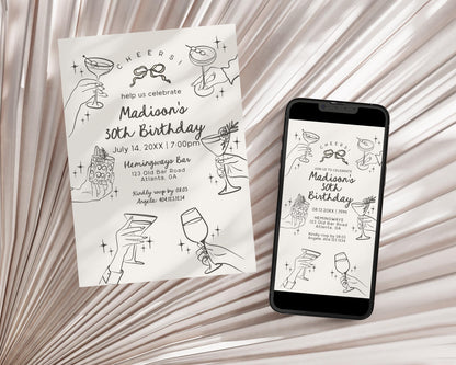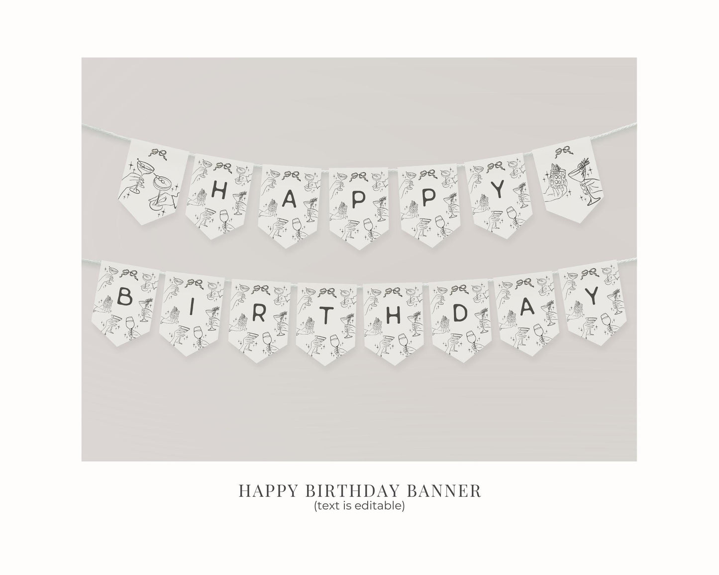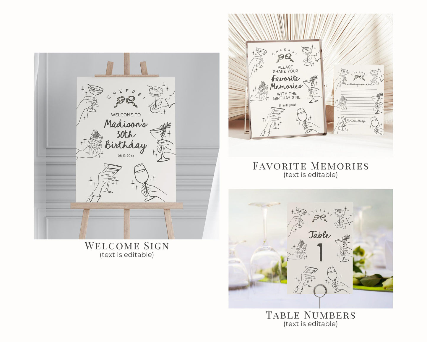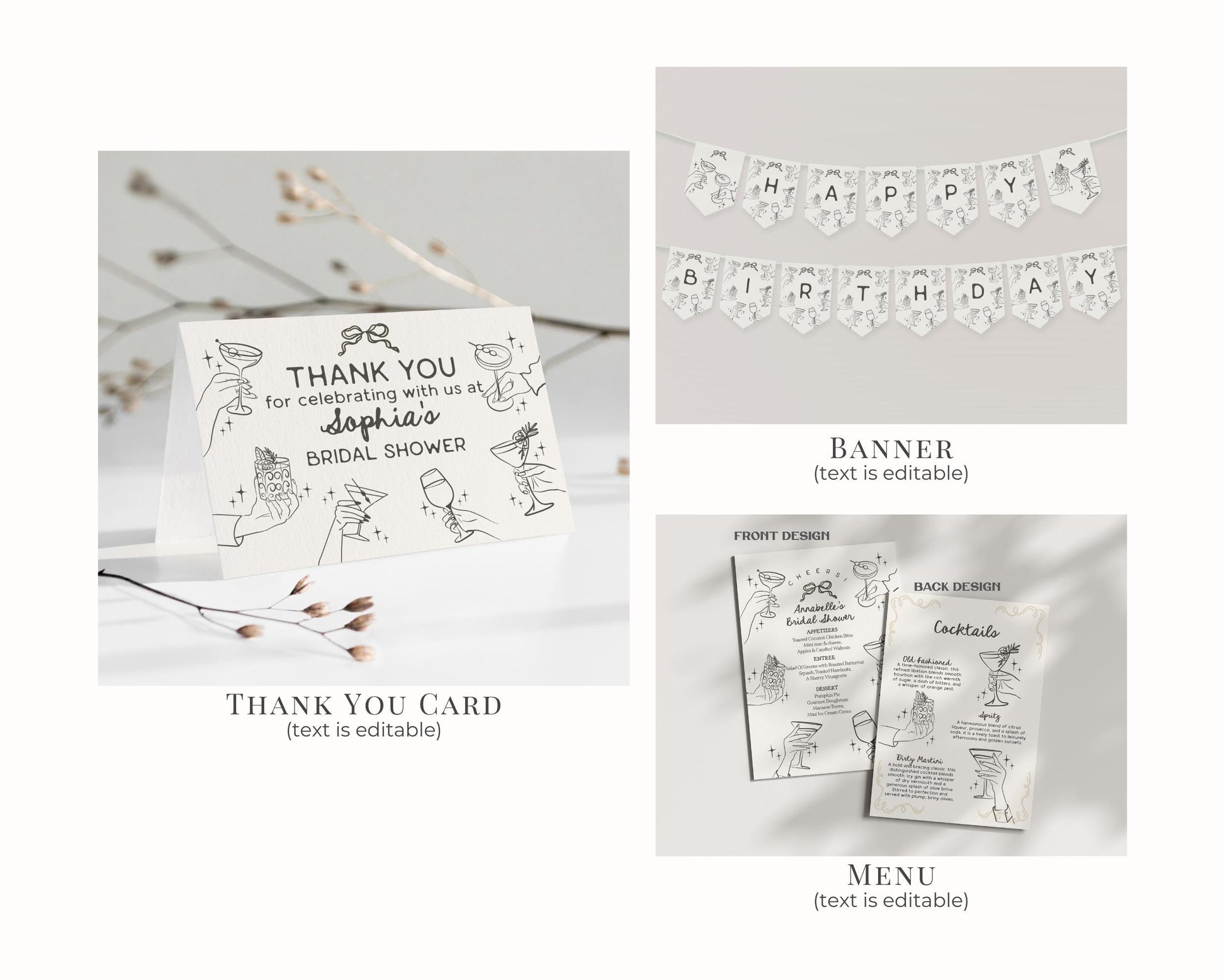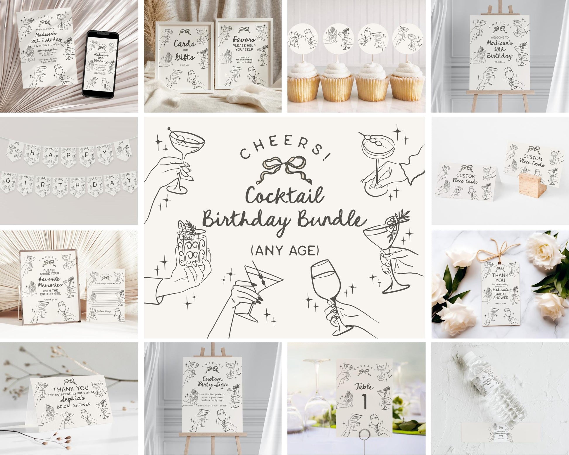 Cheers Beige Cocktail Party Birthday Bundle Template