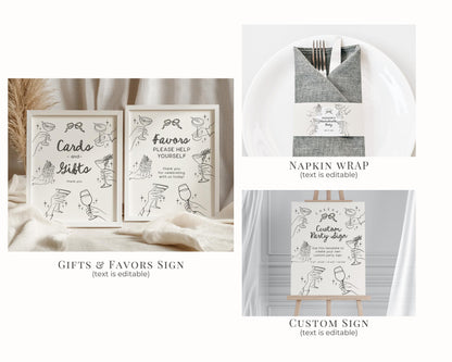 Cheers! This mid-century modern-inspired cocktail party decor features colorful hands holding classic cocktails, bringing a touch of vintage charm to your celebration. Perfect for a sophisticated speakeasy-style gathering or a retro happy hour, this design sets the scene for guests to raise a glass and enjoy a night of timeless elegance.