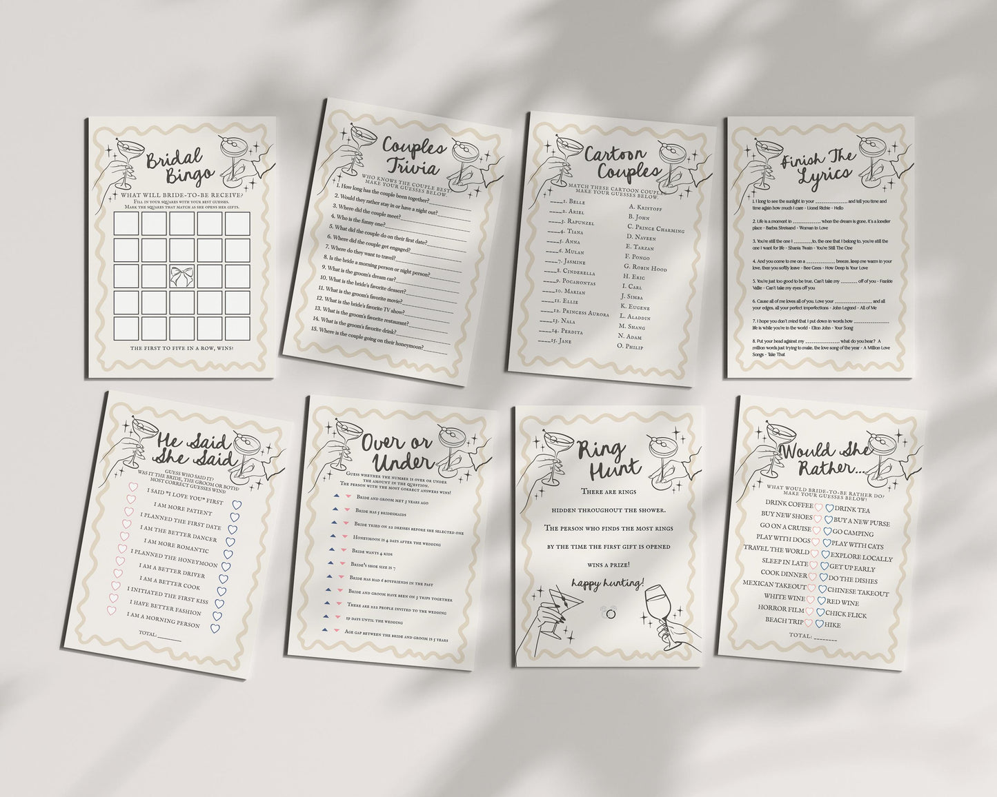 Cheers Beige Cocktail Party Bridal Shower Games Template