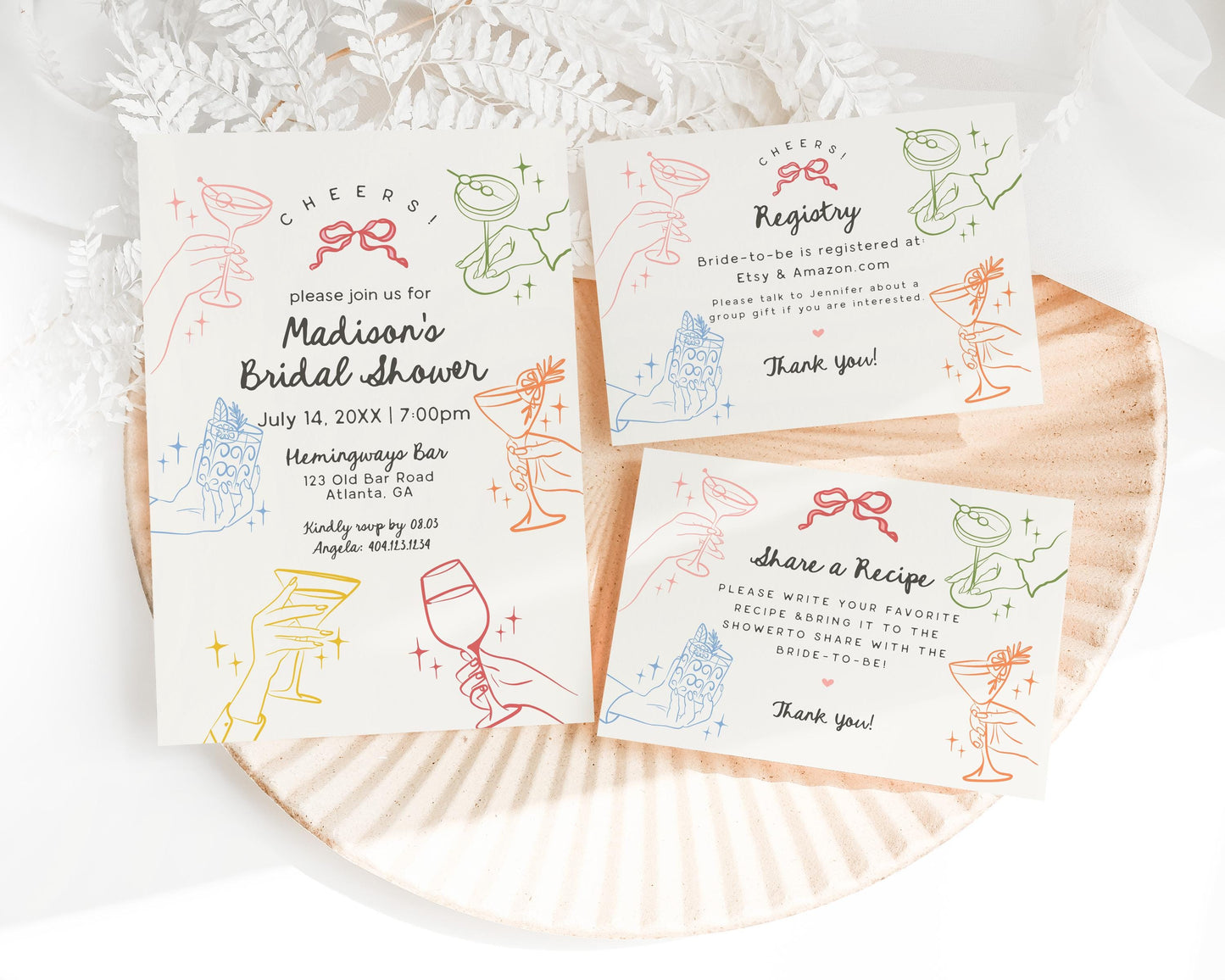 Cheers Colorful Cocktail Party Bridal Shower Bundle Template