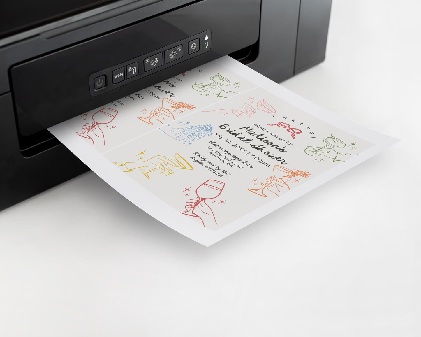 Cheers Colorful Cocktail Party Bachelorette Invite Template, Retro Cocktail Bach Weekend, Hand Drawn Cocktail Hour for Stock the Bar WP1054