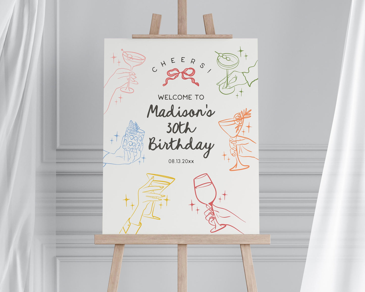 Cheers Colorful Cocktail Party Birthday Welcome Template