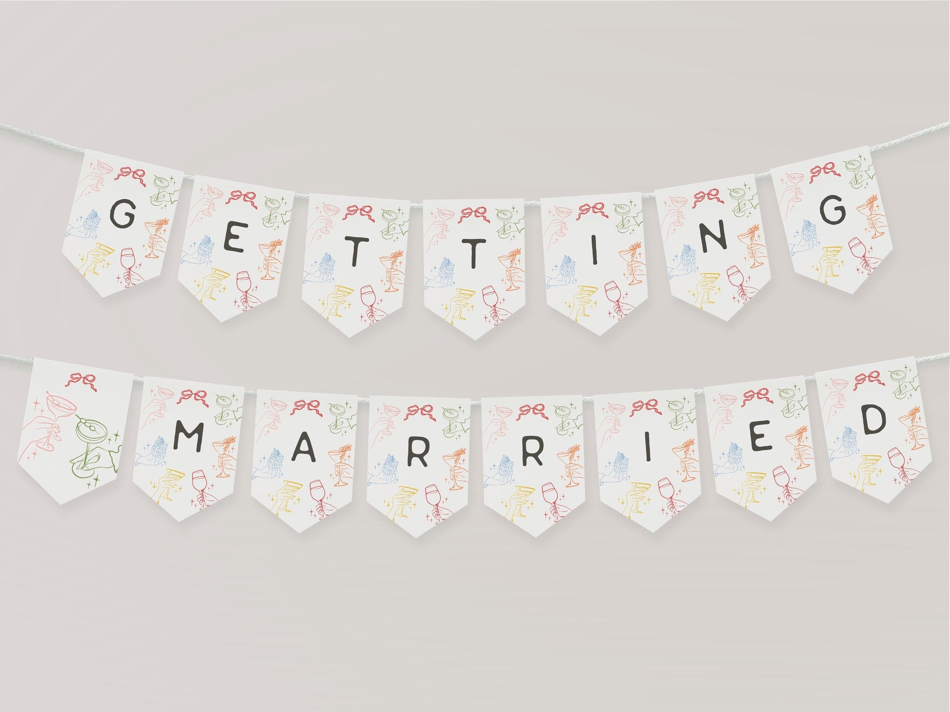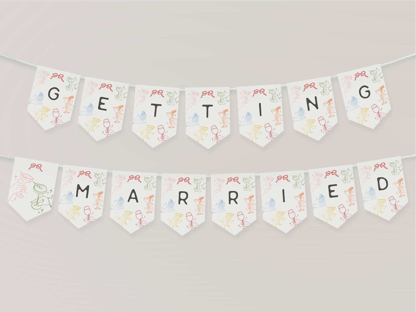 Cheers Colorful Cocktail Party Bridal Shower Banner Template, Retro Cocktail Bridal Brunch, Hand Drawn Cocktails 60s Engagement Party WP1054