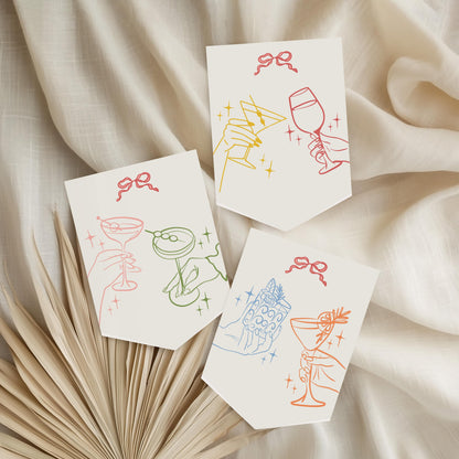 Cheers Colorful Cocktail Party Cards & Gifts and Favors Sign Template, Retro Cocktail Hour Birthday Hand Drawn Cocktail Bridal Shower WP1054