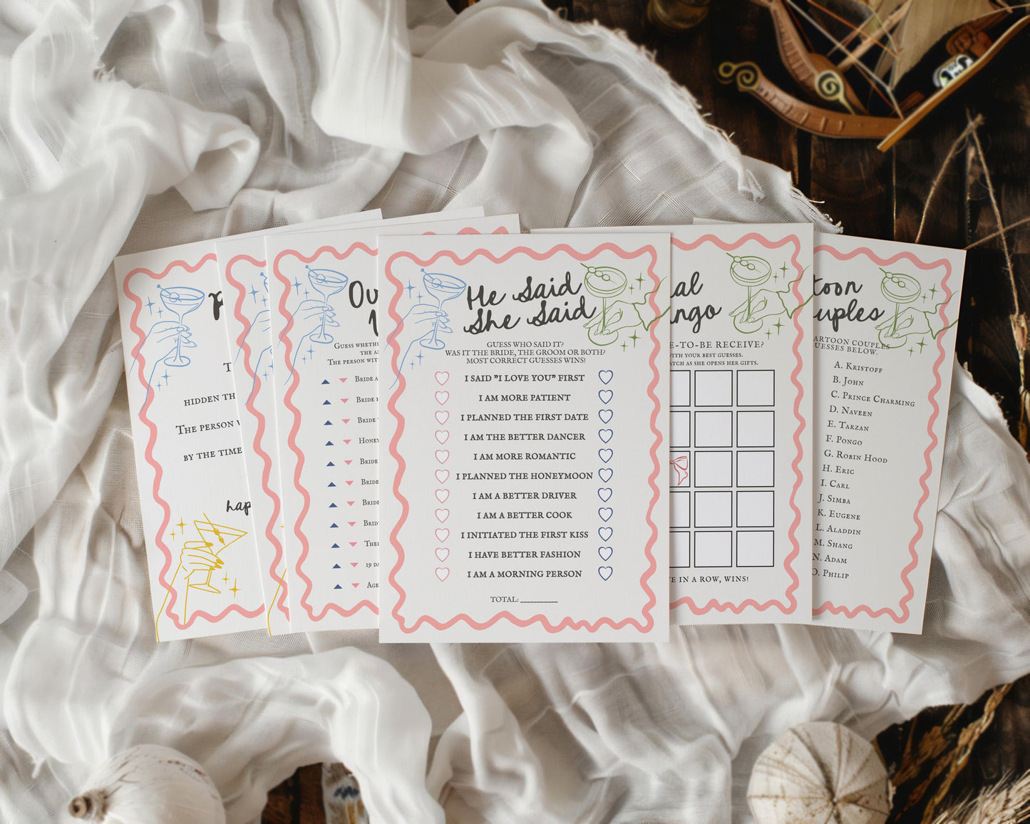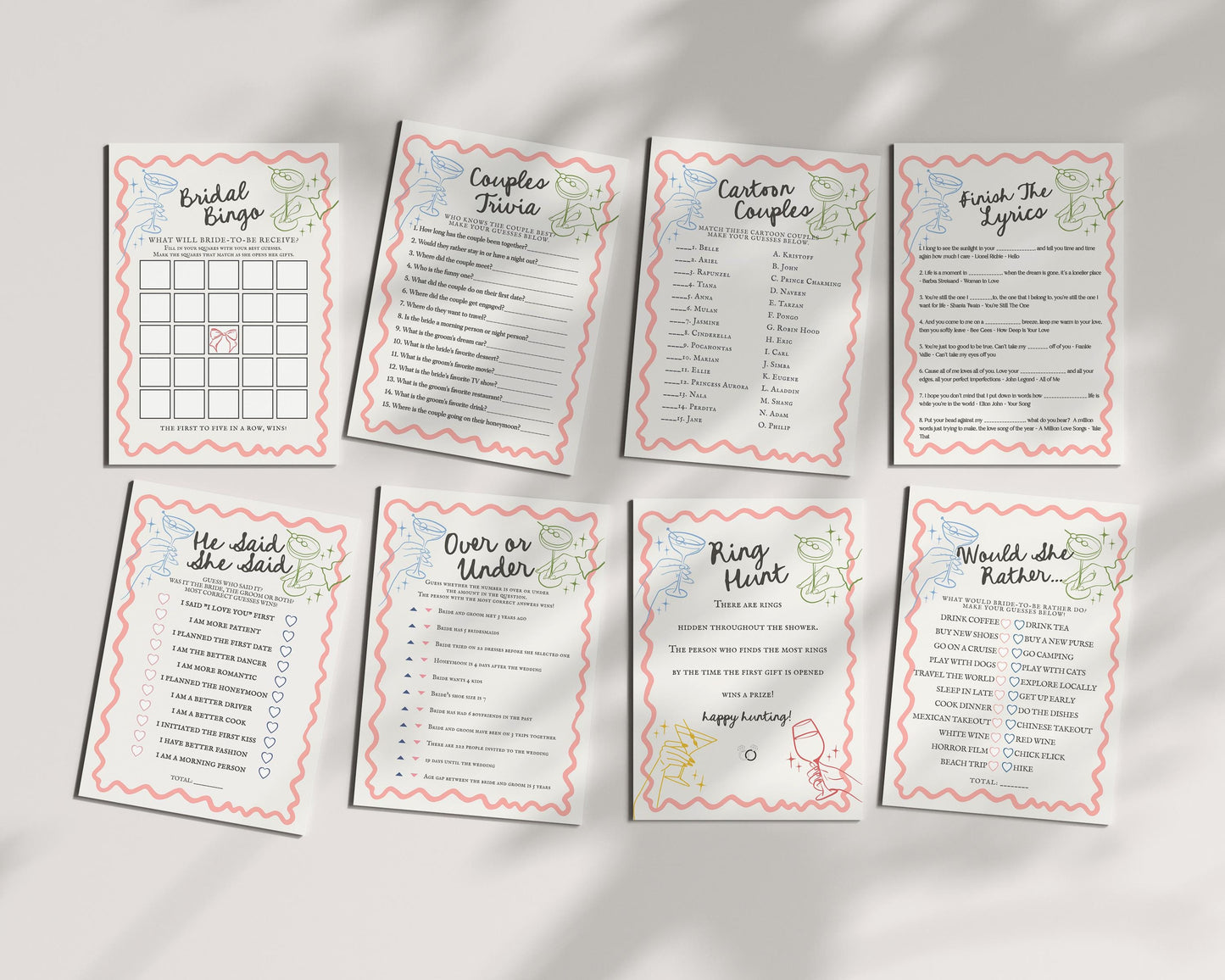Cheers Colorful Cocktail Party Bridal Shower Games Template, Retro Cocktail Bridal Brunch, Hand Drawn Cocktails, 60s Engagement Party WP1054