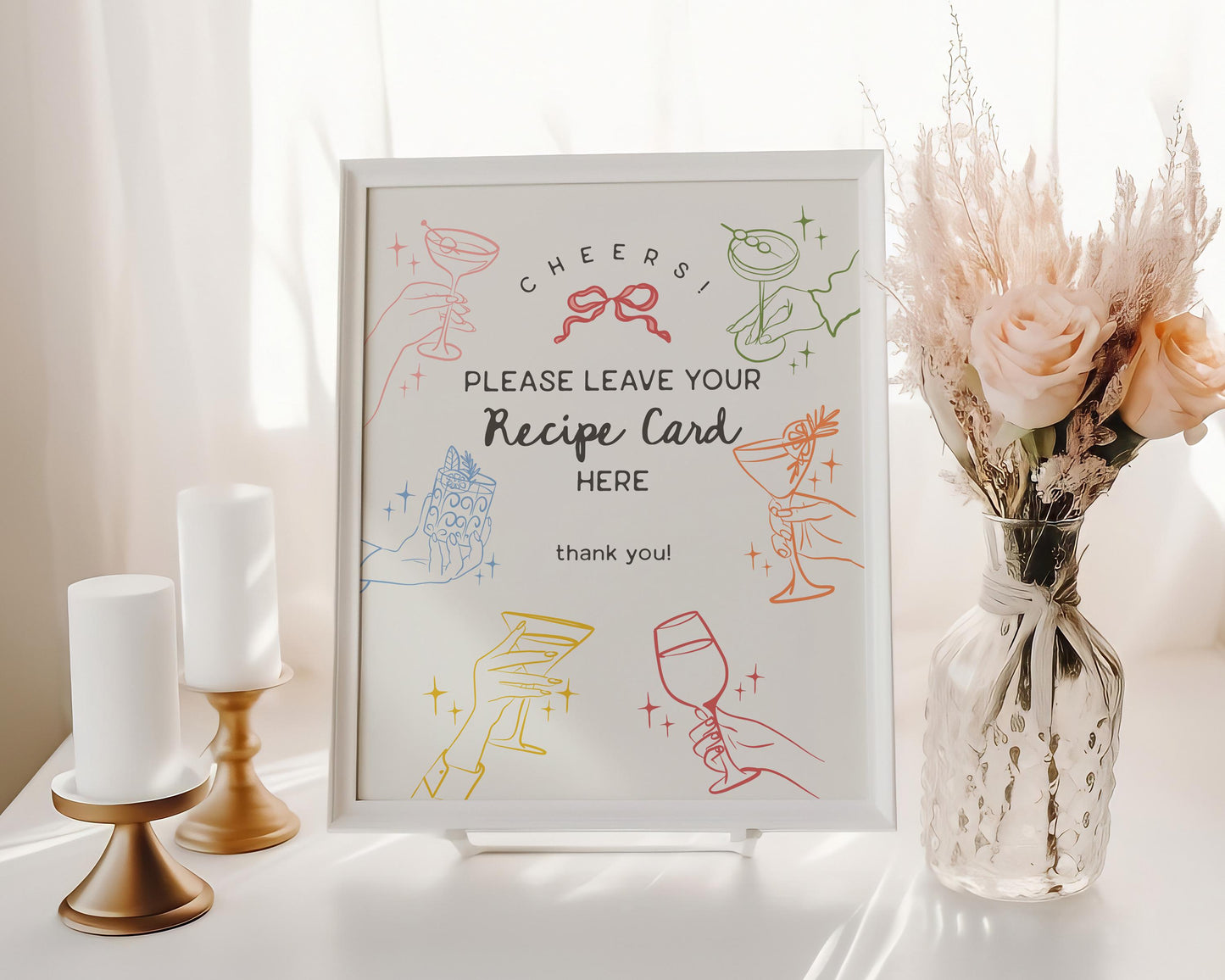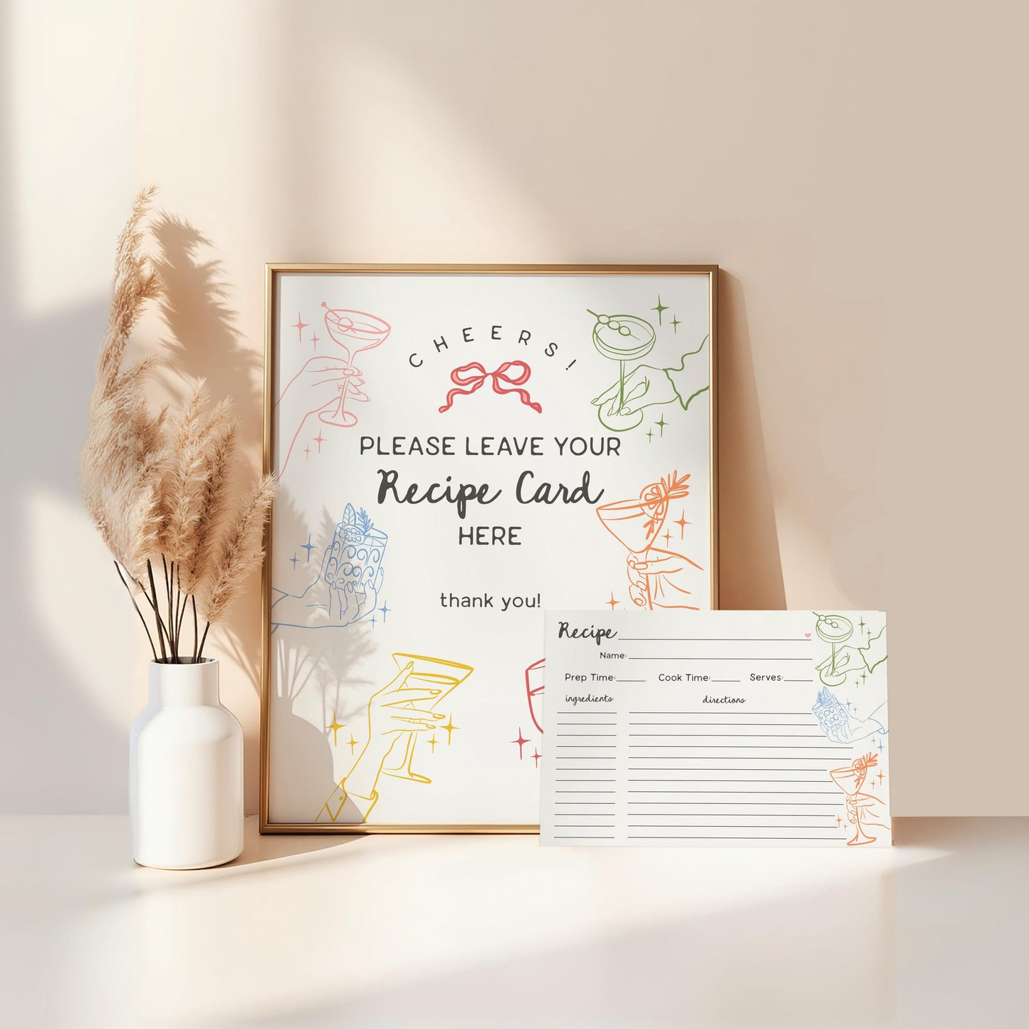 Cheers Colorful Cocktail Party Cards & Gifts and Favors Sign Template, Retro Cocktail Hour Birthday Hand Drawn Cocktail Bridal Shower WP1054