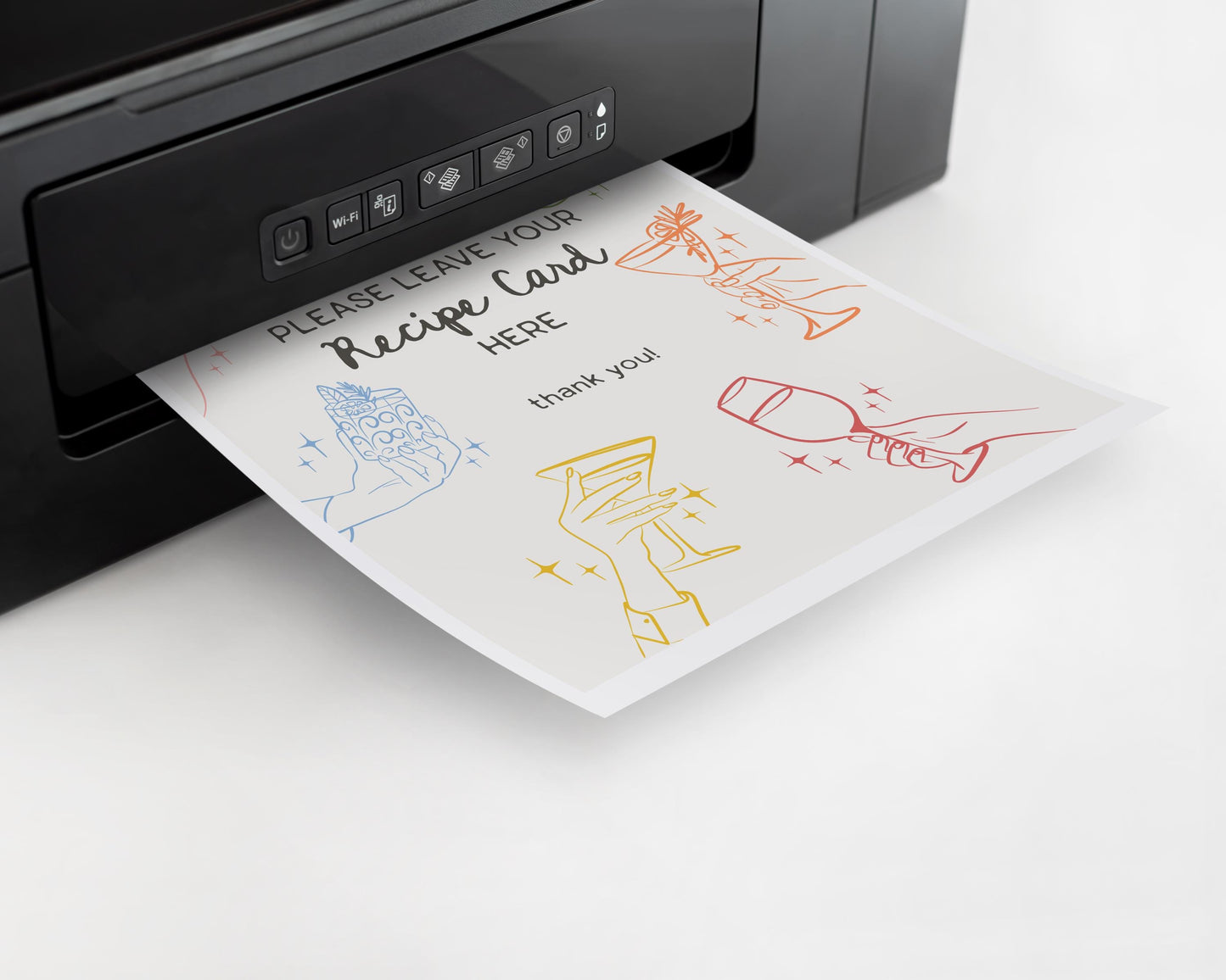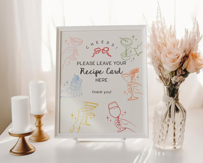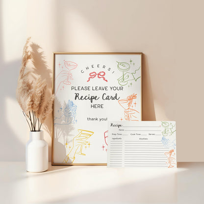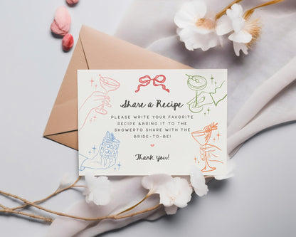 Cheers Colorful Cocktail Party Recipe Card Template, Retro Cocktail Bridal Shower, Hand Drawn Cocktails Stock the Bar 60s Engagement WP1054
