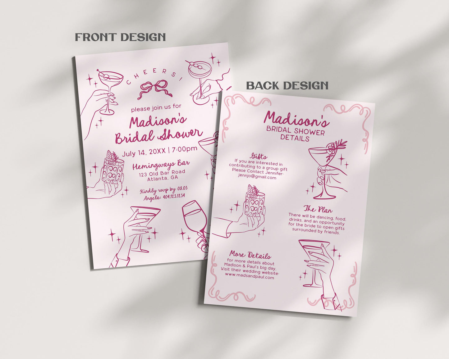 Cheers Pink Cocktail Party Bachelorette Bundle Template