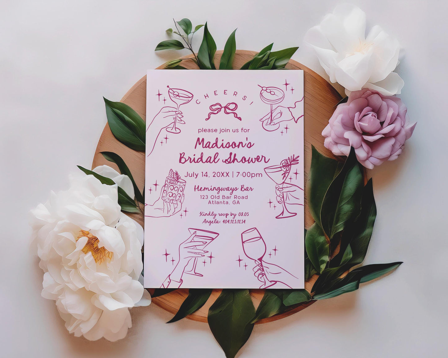 Cheers Pink Cocktail Party Bachelorette Invite Template