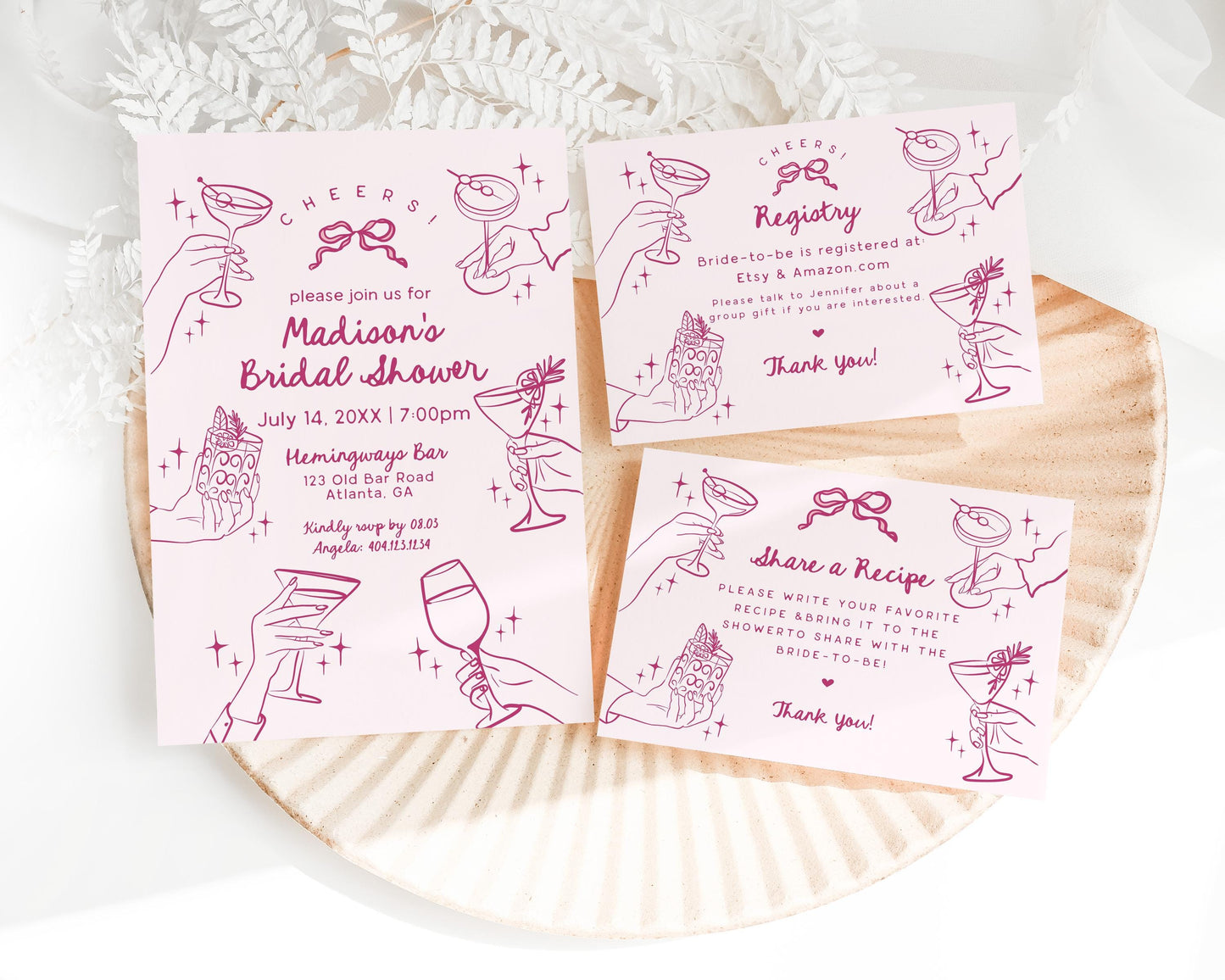 Cheers Pink Cocktail Party Bridal Shower Bundle Template