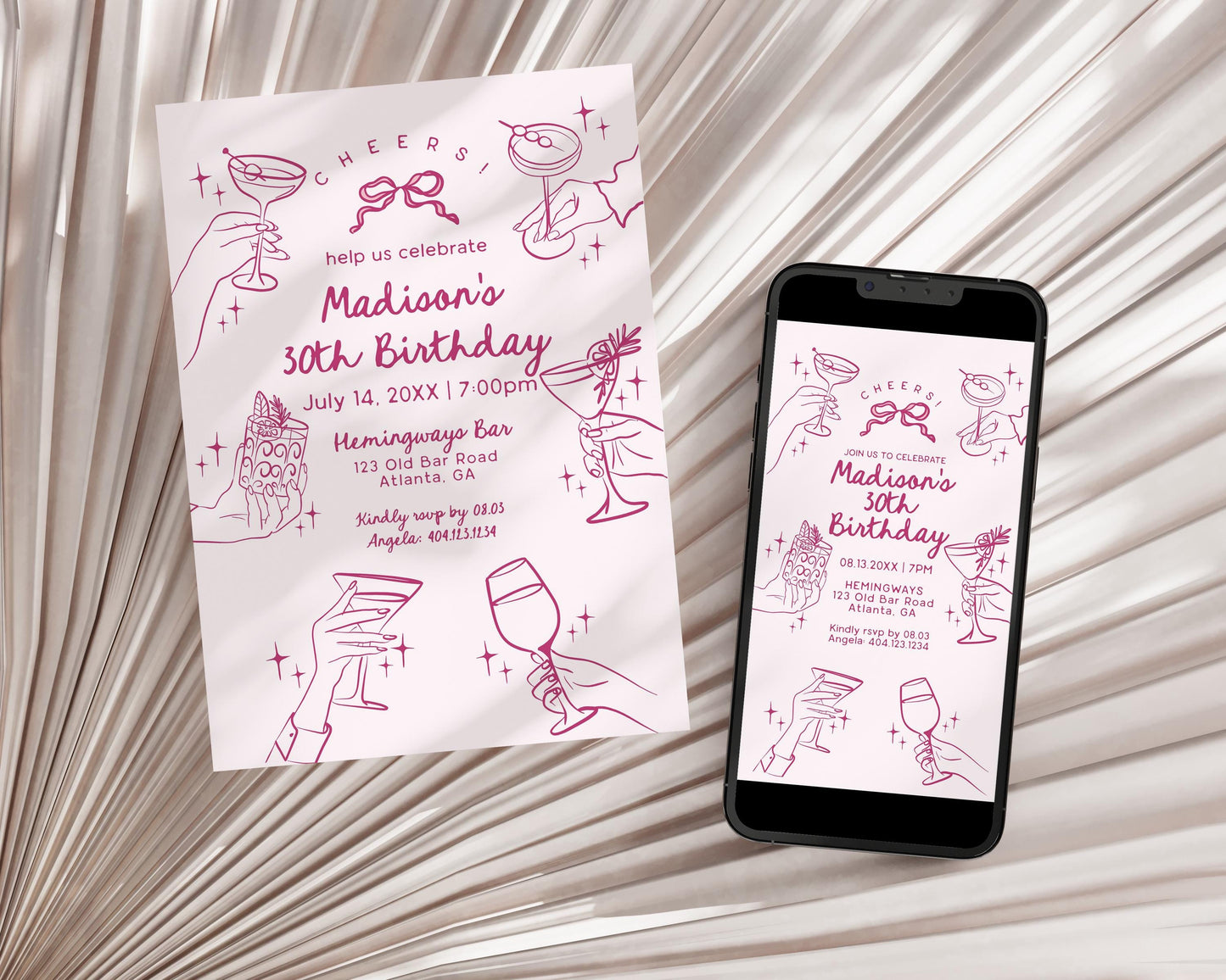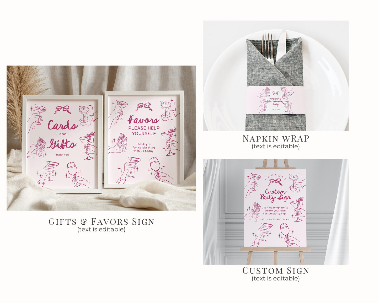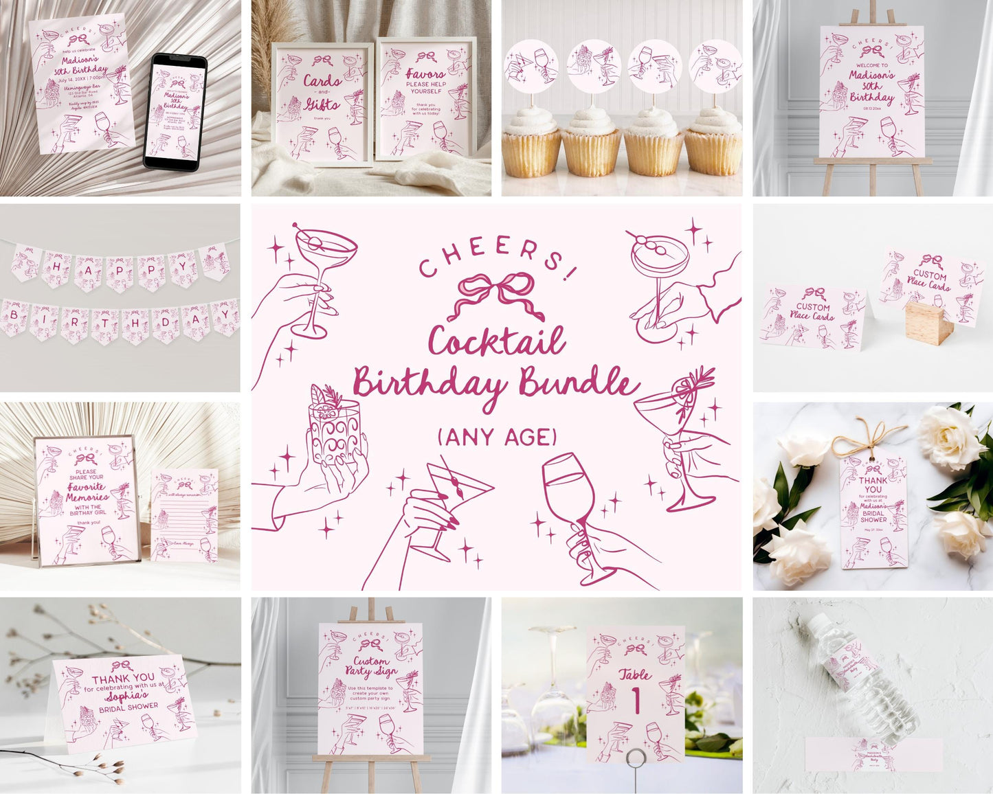 Cheers Pink Cocktail Party Birthday Bundle Template