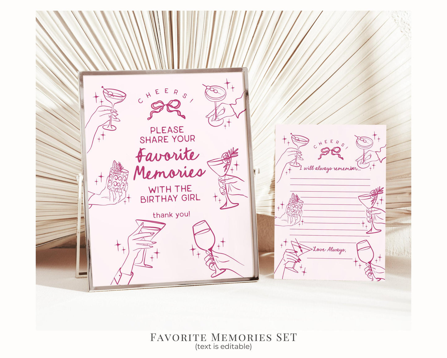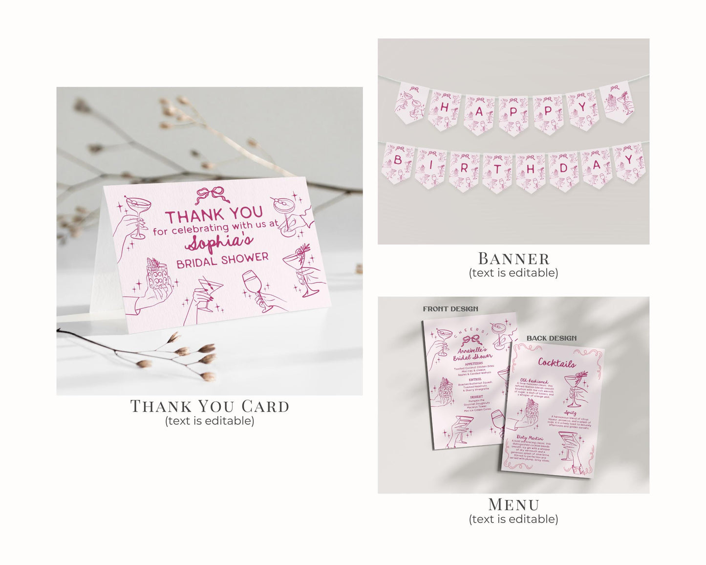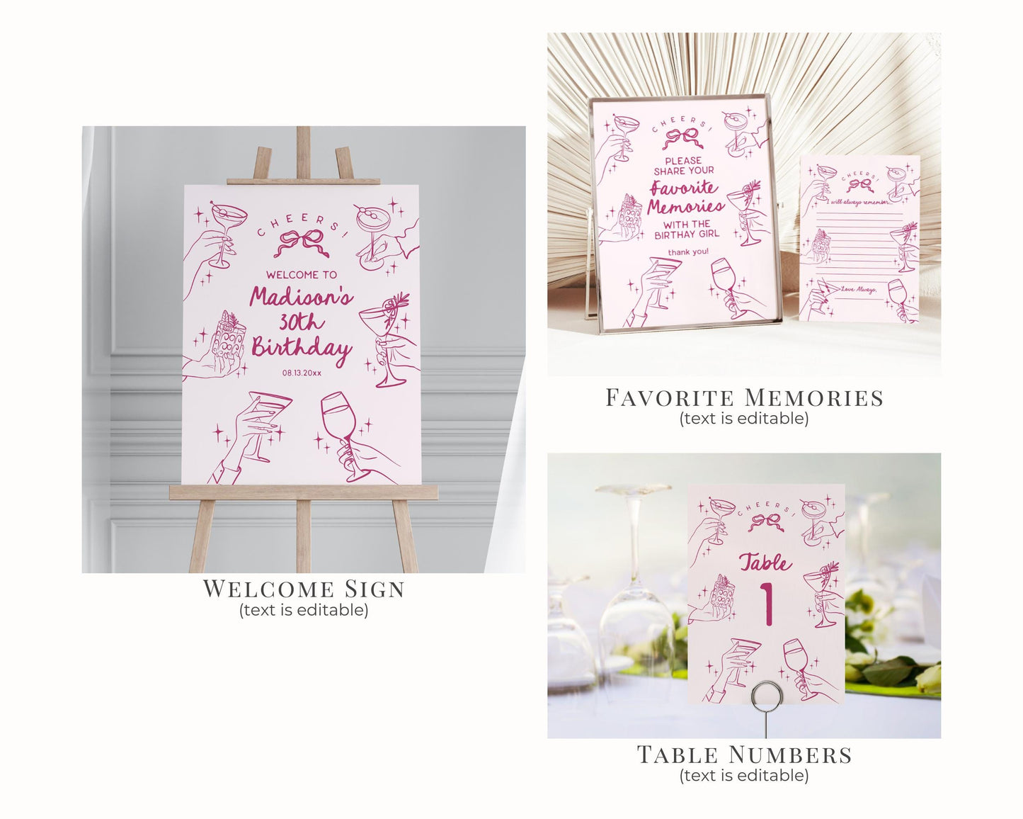 Cheers Pink Cocktail Party Birthday Bundle Template