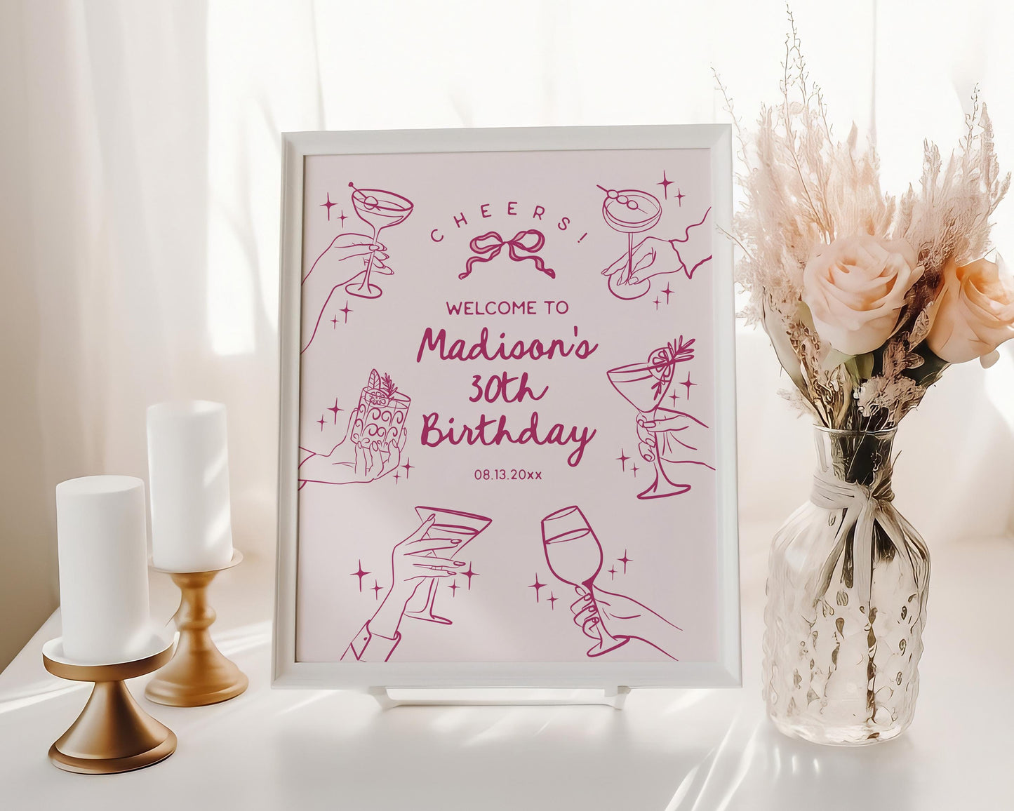 Cheers Pink Cocktail Party Birthday Welcome Template
