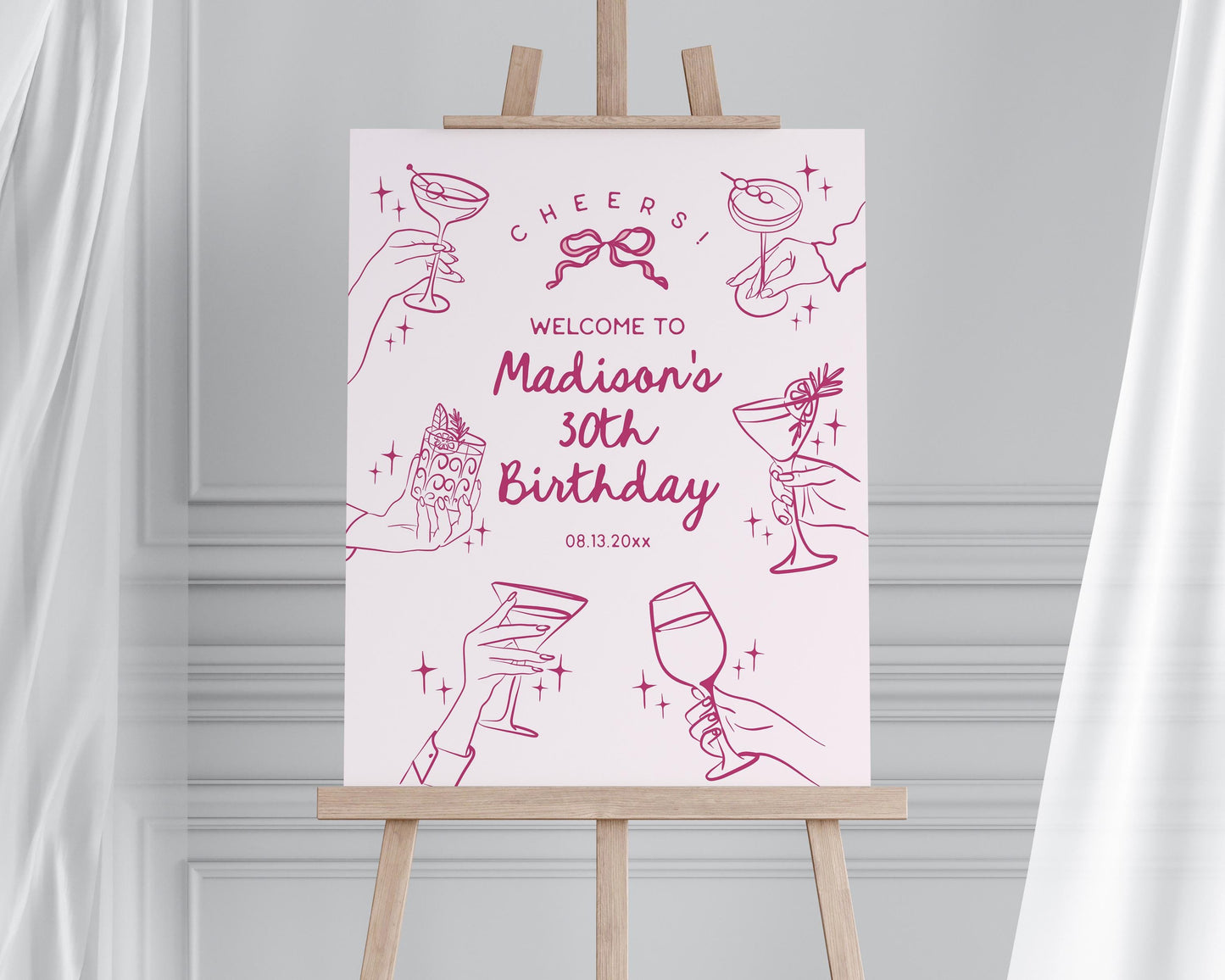 Cheers Pink Cocktail Party Custom Sign Template