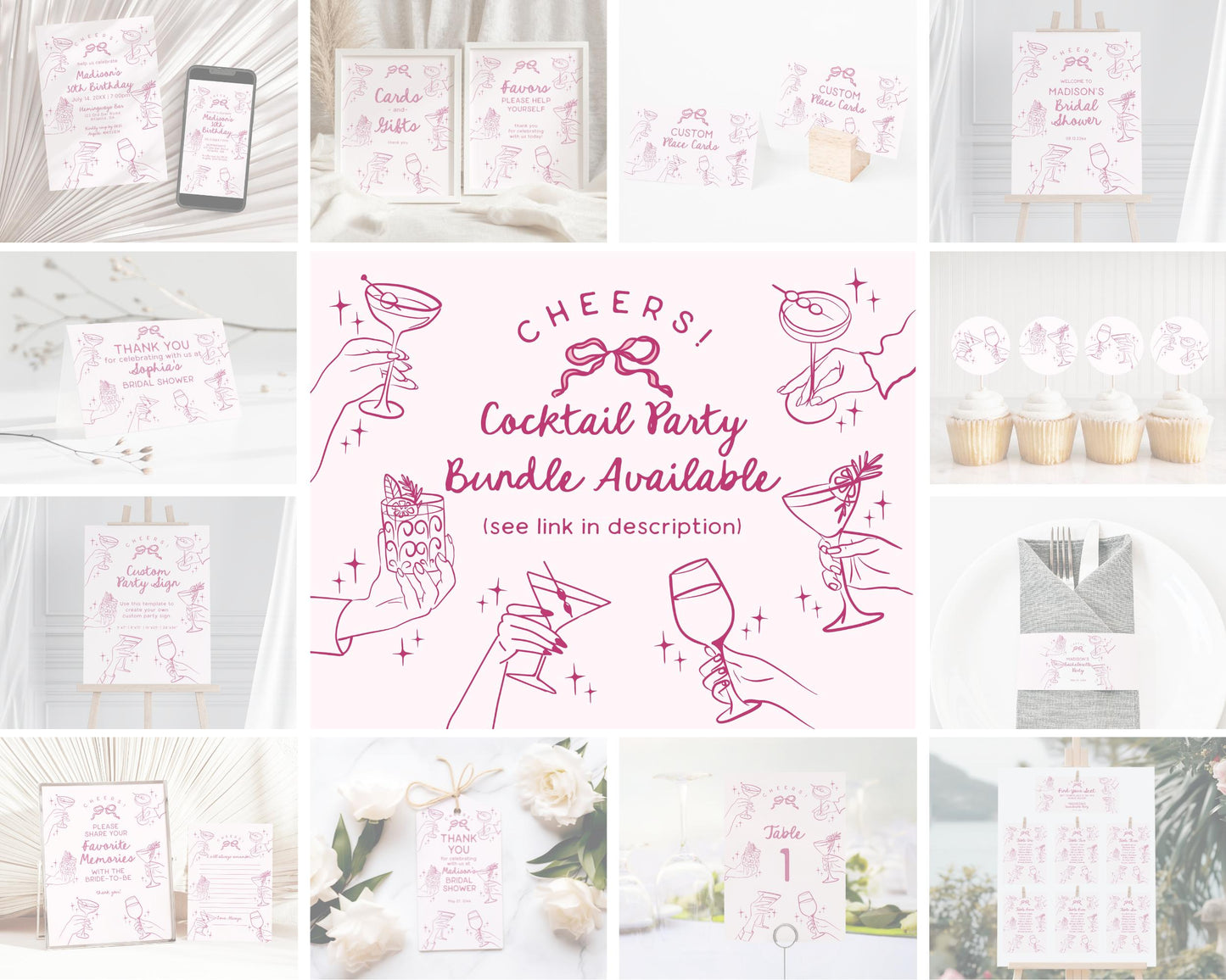 Cheers Pink Cocktail Party Bachelorette Bundle Template