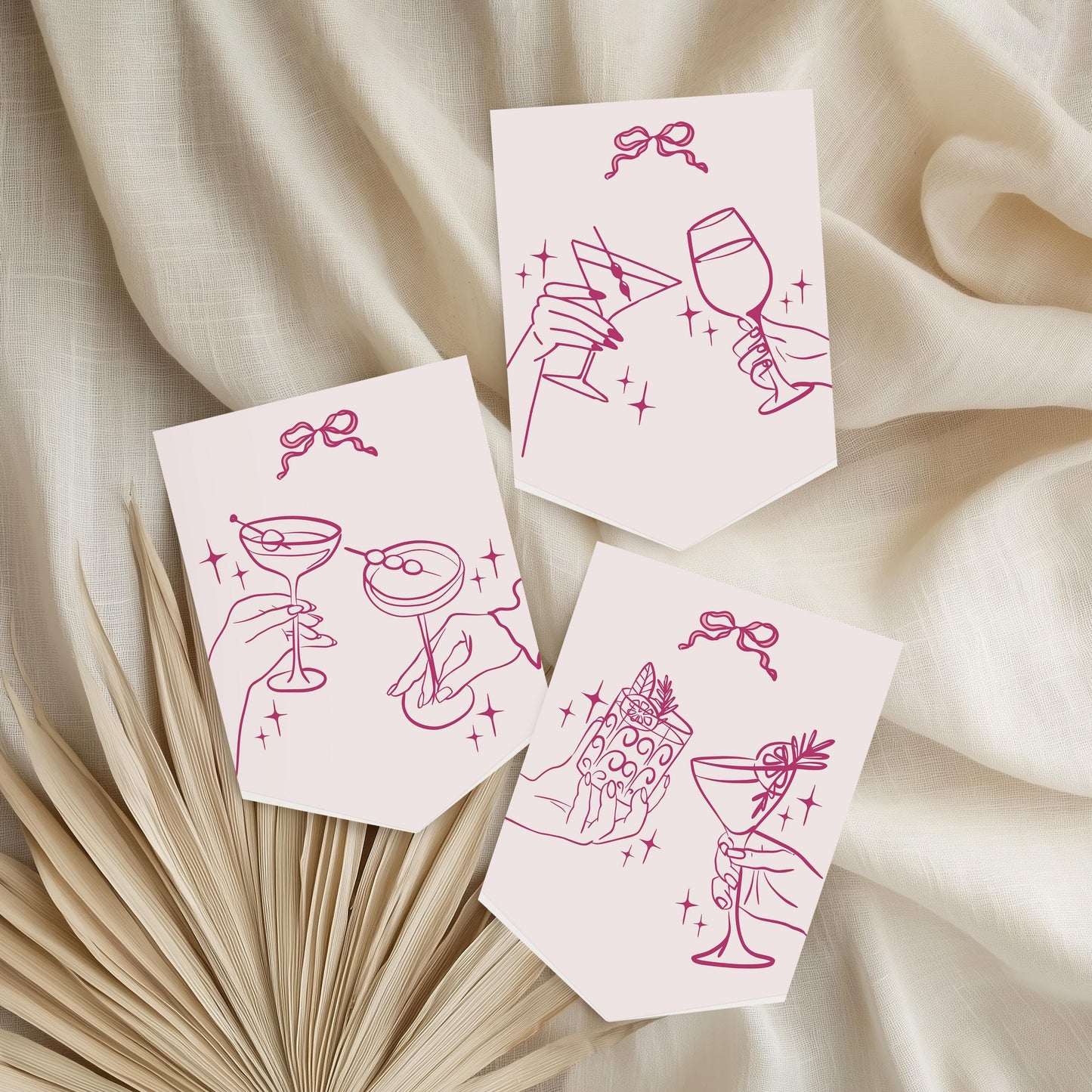 Cheers Pink Cocktail Party Place Cards Template, Retro Cocktail Hour Birthday Party, Hand Drawn Cocktails for 60s Bridal Shower WP1055
