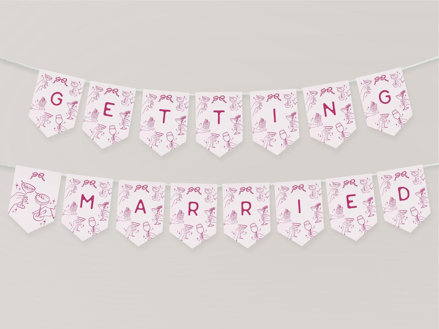 Cheers Pink Cocktail Party Bridal Shower Banner Template, Retro Cocktail Bridal Brunch, Hand Drawn Cocktails 60s Engagement Party WP1055