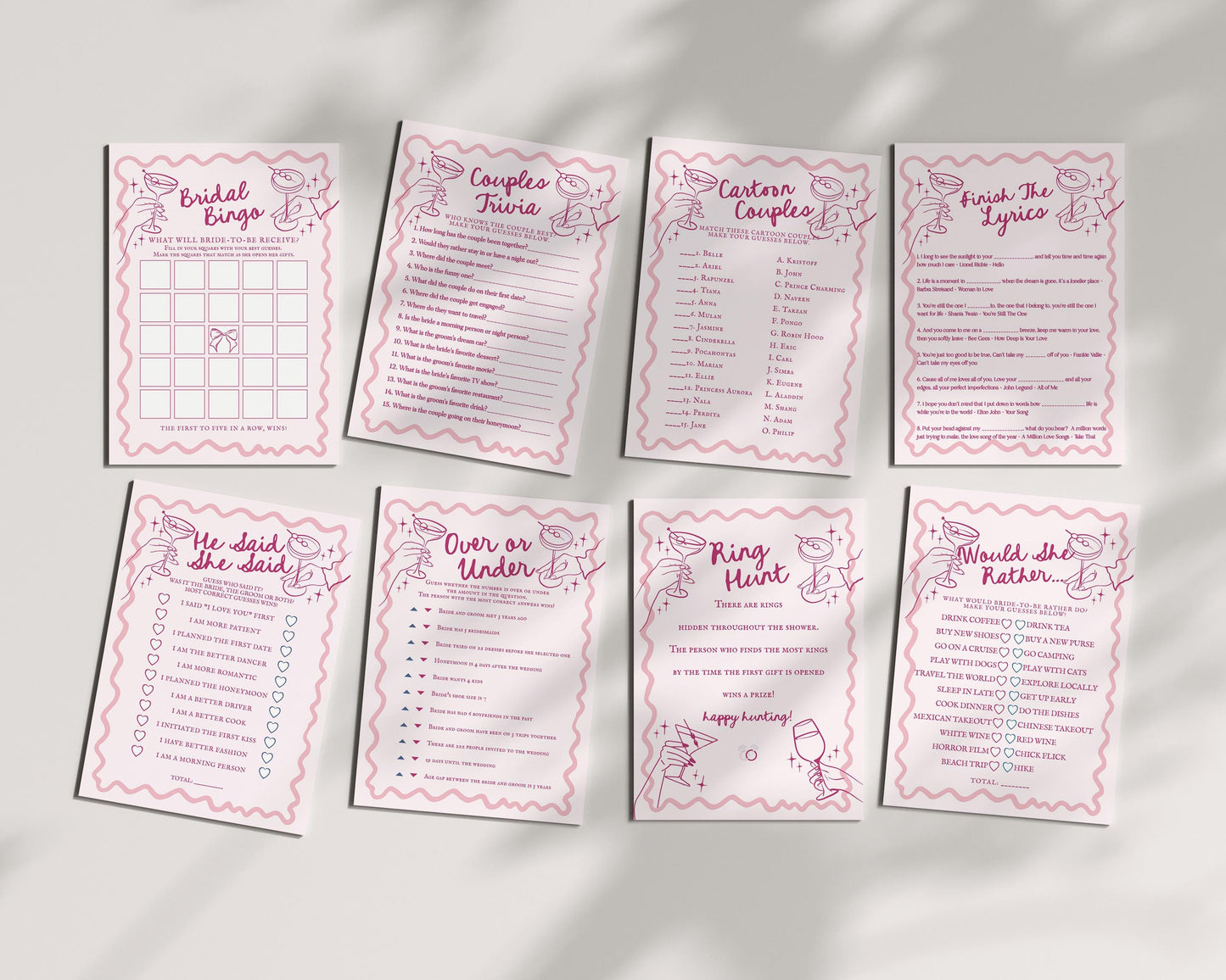 Cheers Pink Cocktail Party Bridal Shower Games Template