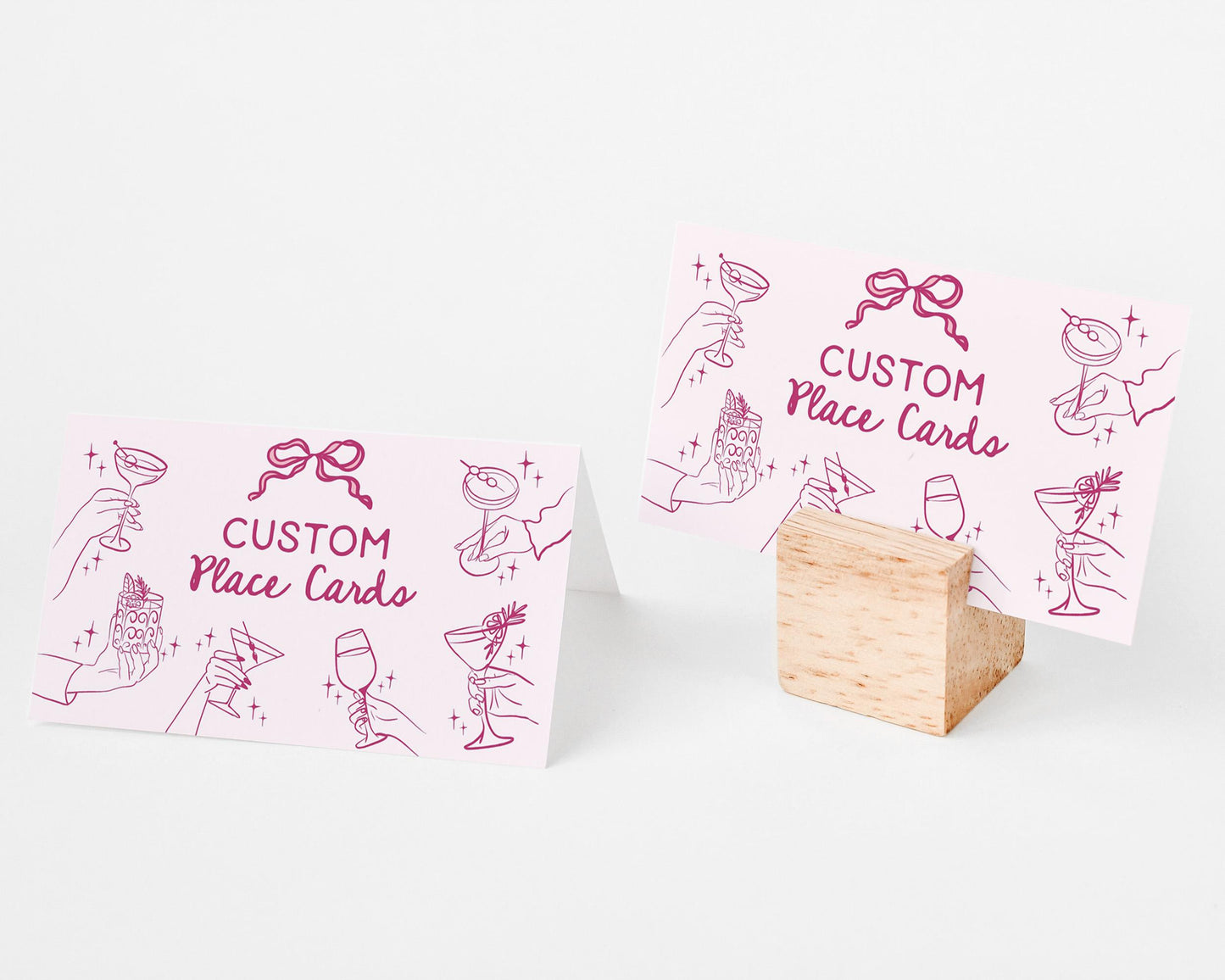 Cheers Pink Cocktail Party Place Cards Template, Retro Cocktail Hour Birthday Party, Hand Drawn Cocktails for 60s Bridal Shower WP1055