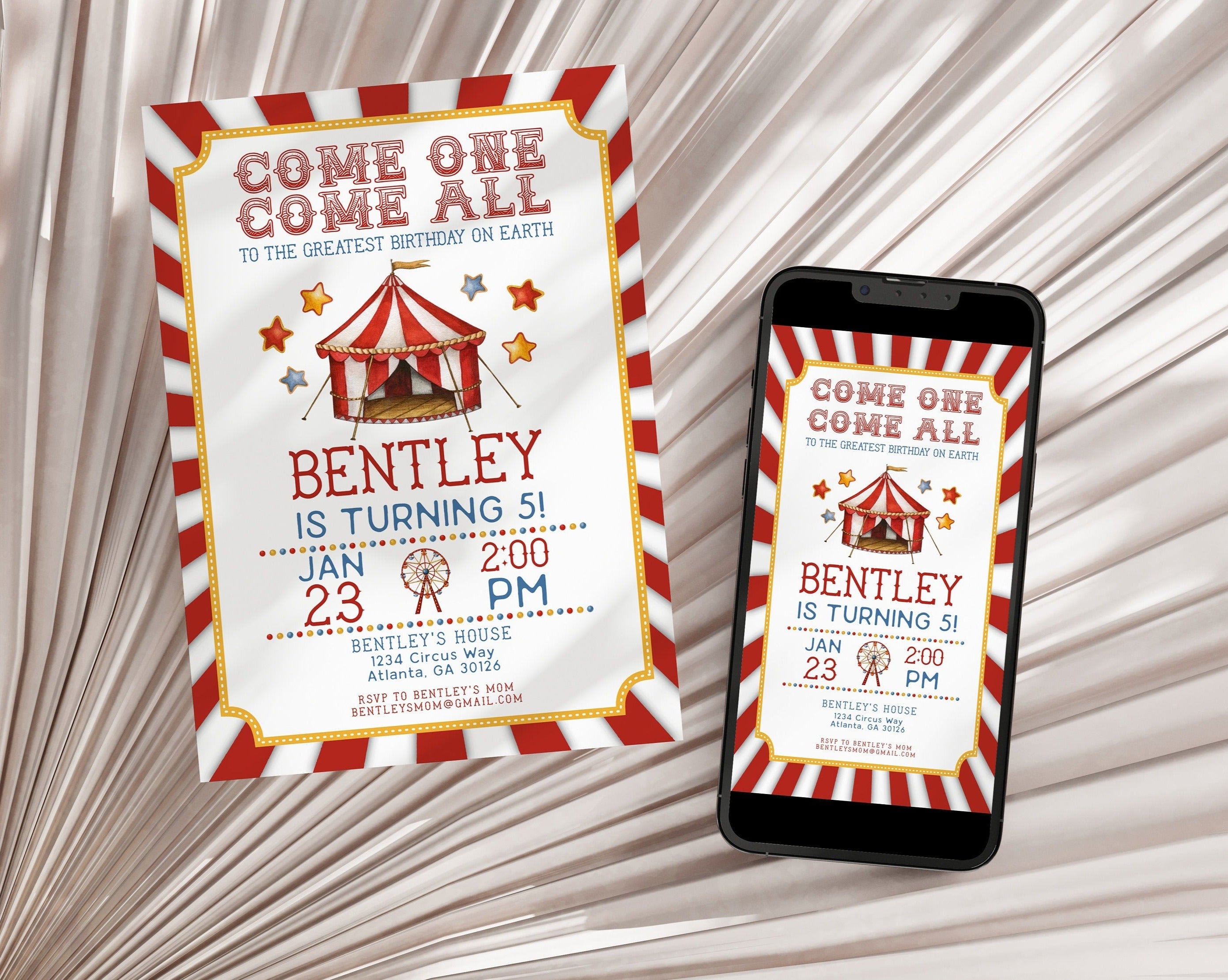Circus Birthday Party Invitation Template, gender neutral Carnival theme birthday décor with circus animals editable instant download invite