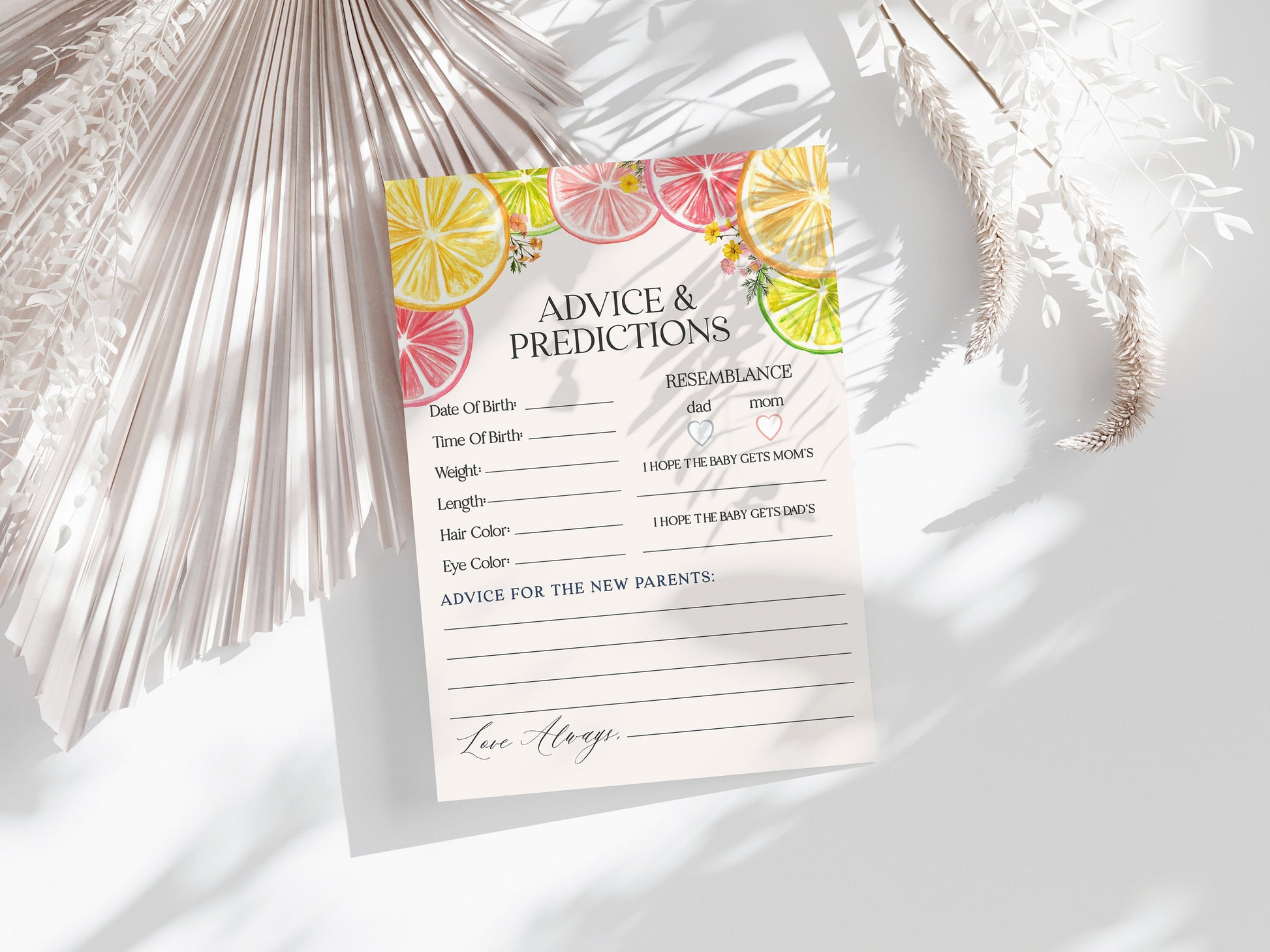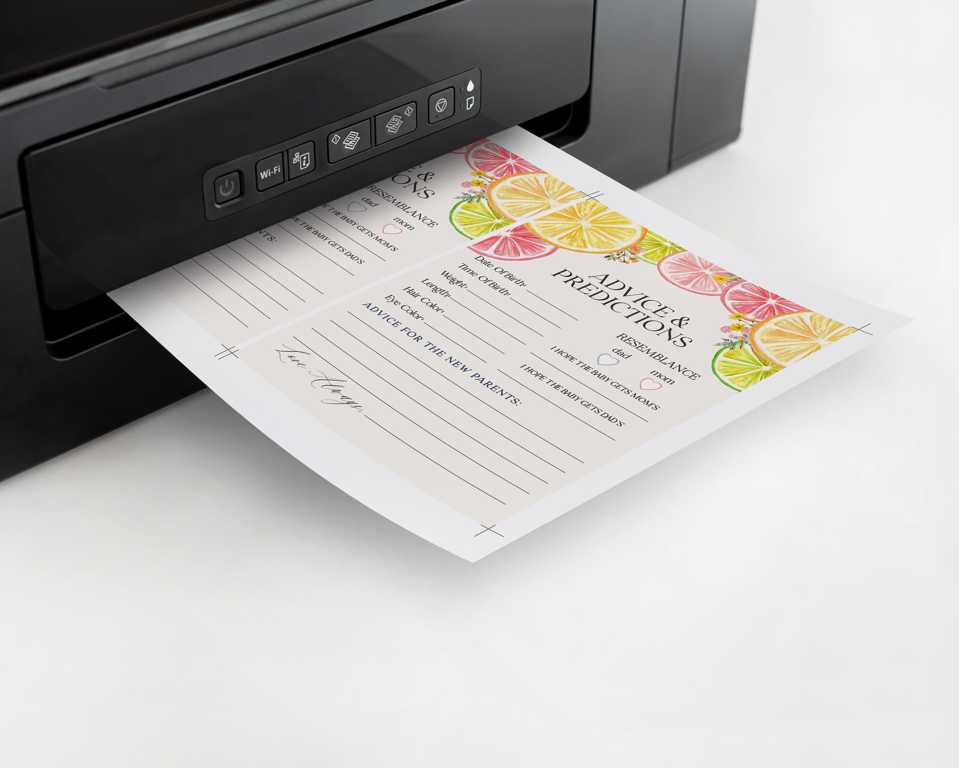Citrus Floral Recipe Card Printable Template for Bridal Shower