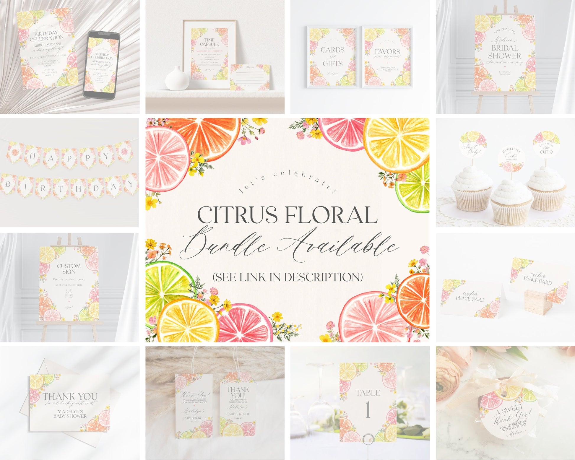 Citrus Floral Birthday Party Favor Tags Printable Template