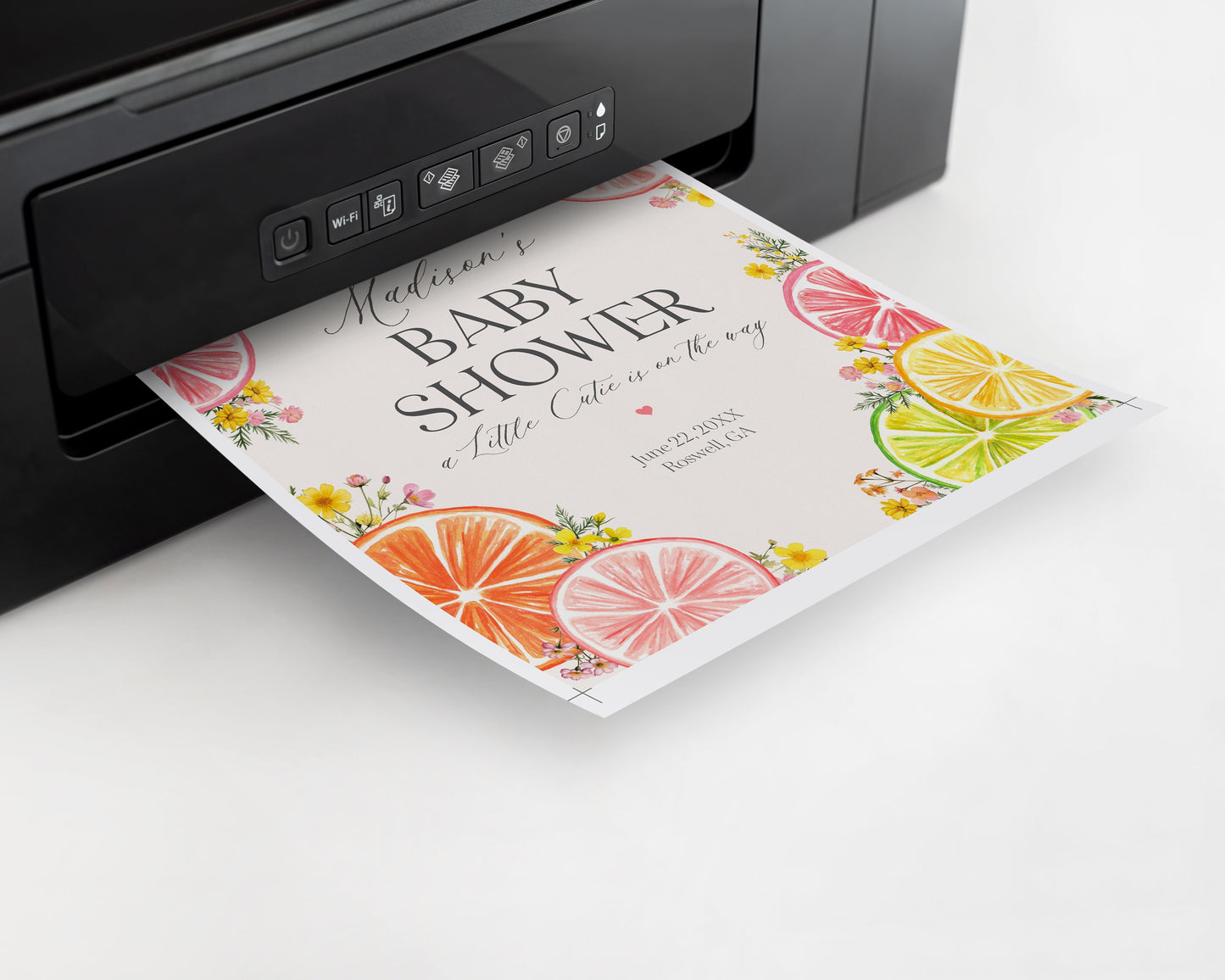 Citrus Floral Baby Shower Invitation Printable Template, Little Cutie Baby Sprinkle for Summer Baby Shower, Gender Neutral Florida Decor