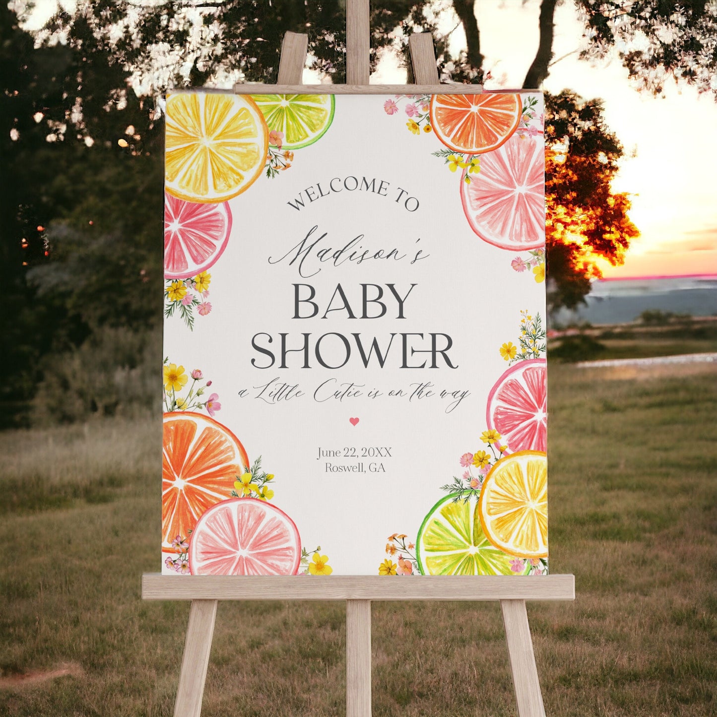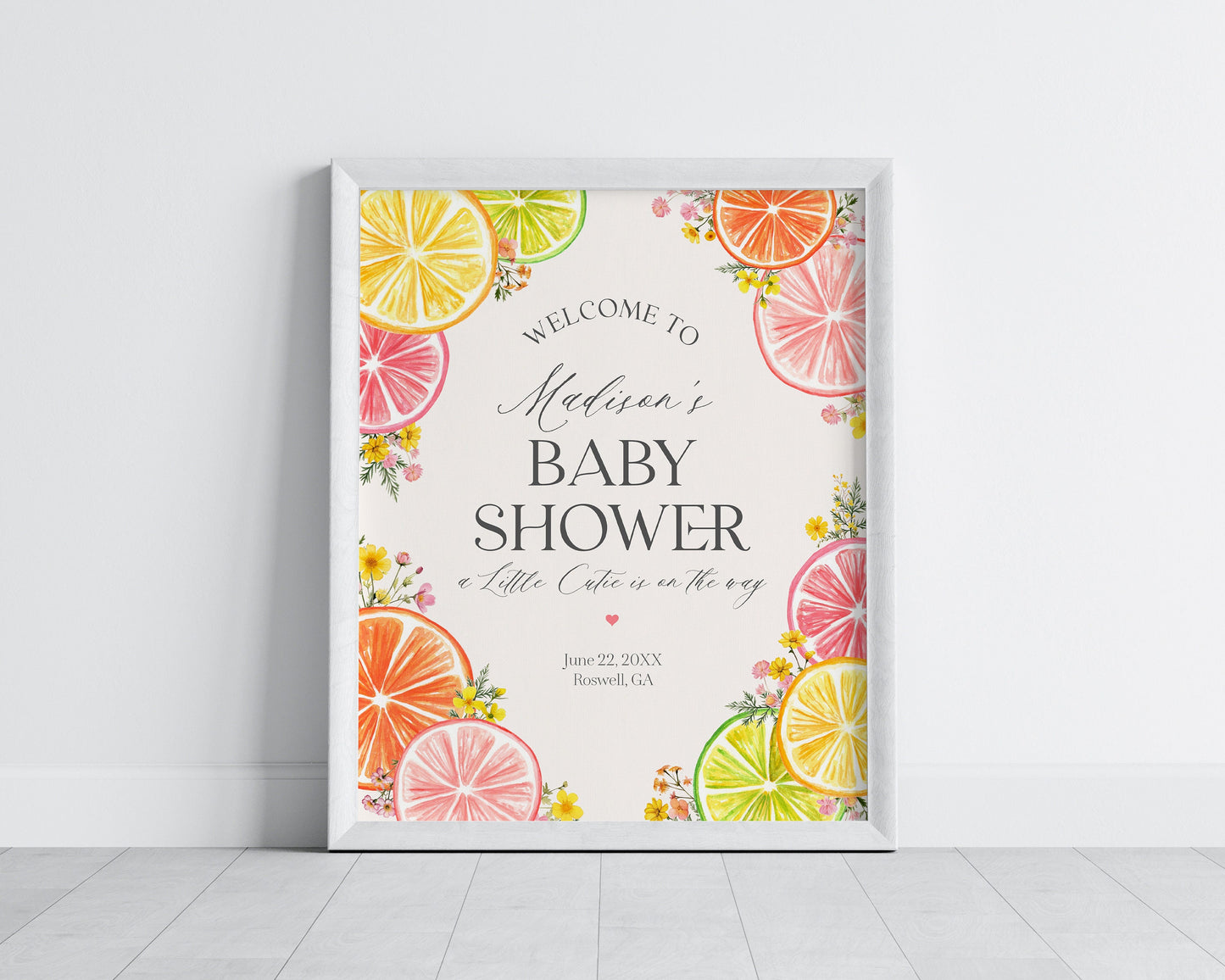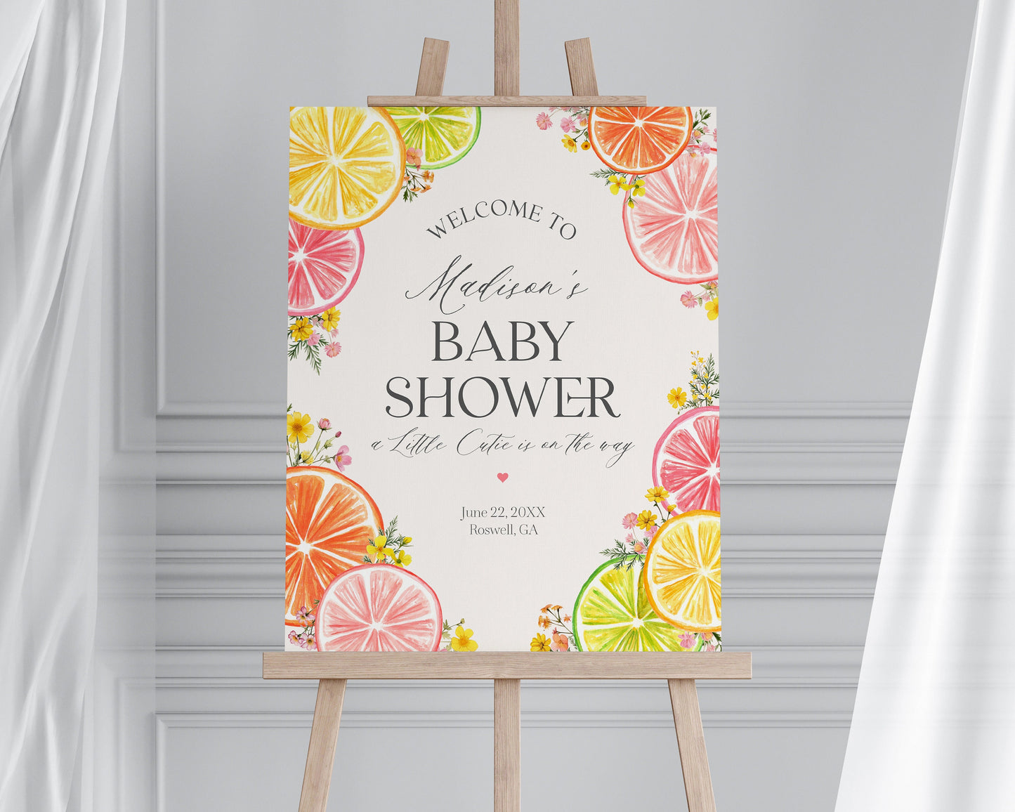 Citrus Floral Baby Shower Welcome Sign Printable Template, Little Cutie Baby Sprinkle for Summer Baby Shower, Florida Baby Shower Decor