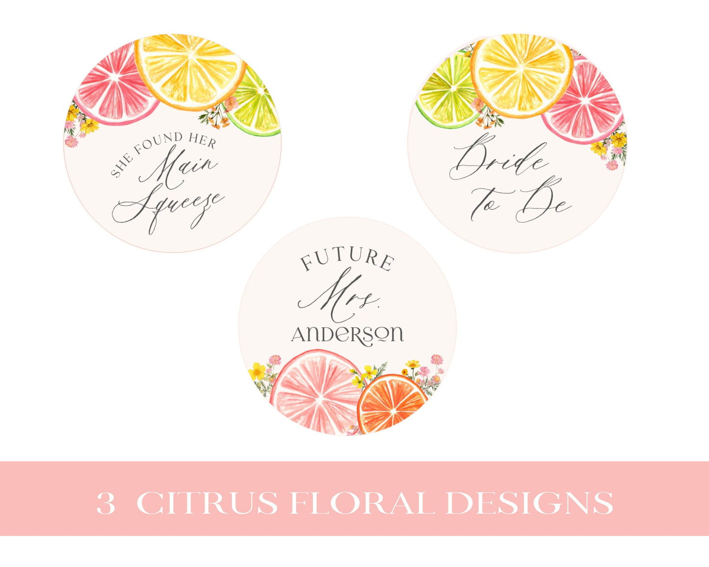 Citrus Floral Bridal Shower Favor Tags Printable Template, Main Squeeze Bridal Brunch for Summer Bridal Shower, Florida Bridal Shower Decor