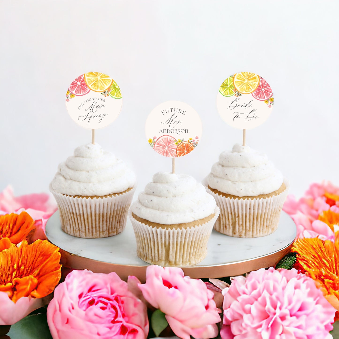 Citrus Floral Bridal Shower Cupcake Toppers Printable Template, Main Squeeze Bridal Brunch for Summer Bridal Shower, Florida Bridal Shower