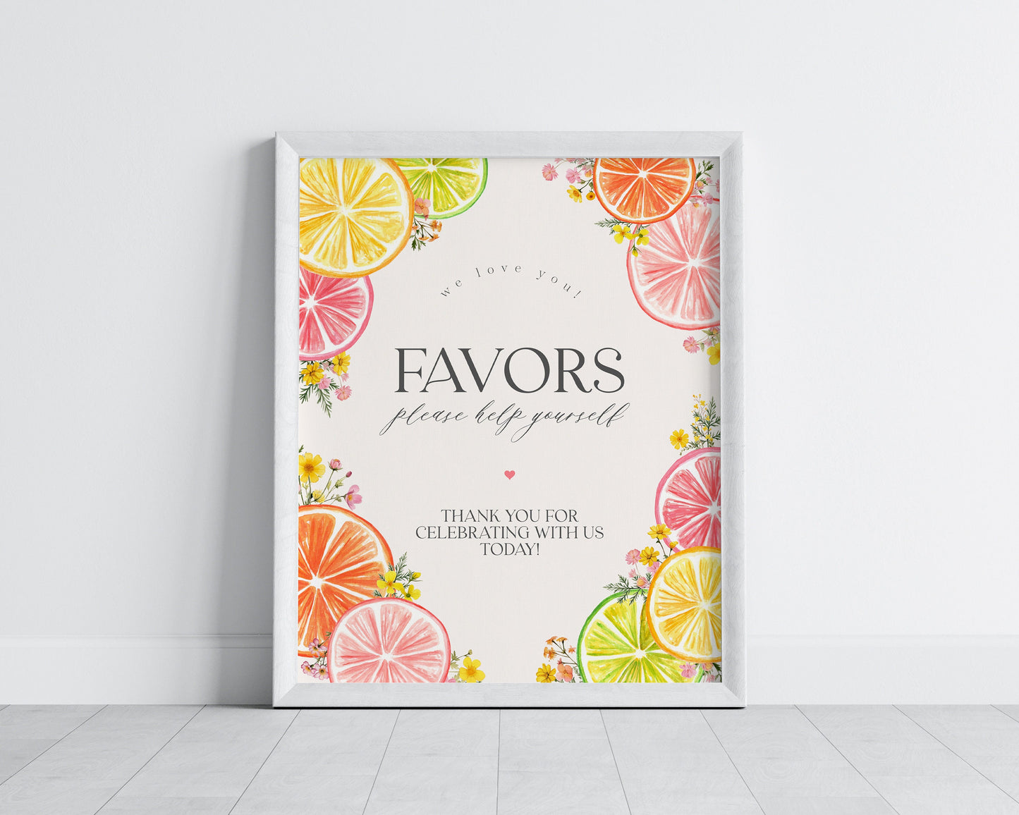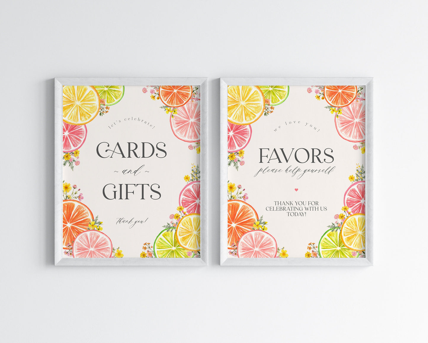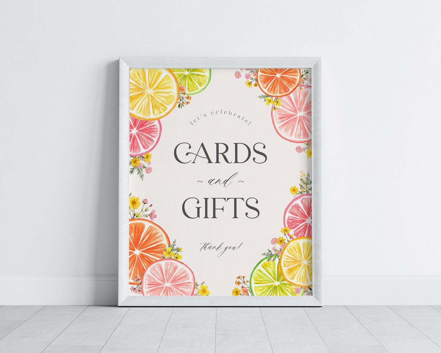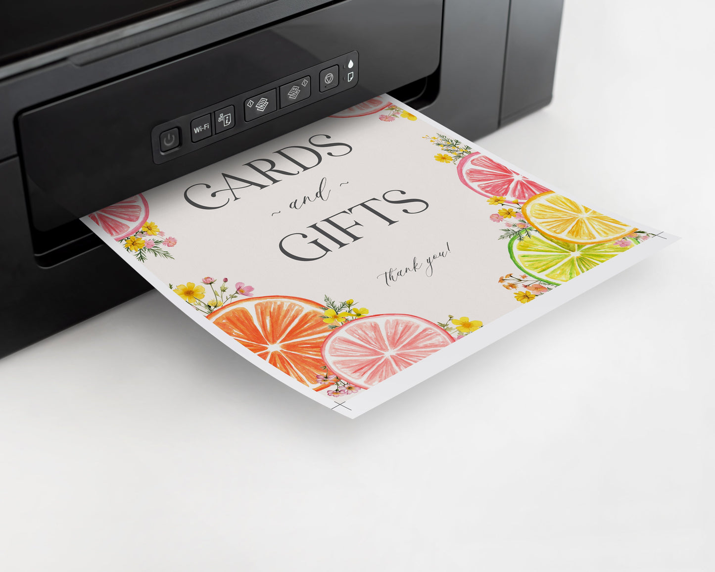 Citrus Floral Cards & Gifts and Favors Sign Printable Template, Coastal Birthday Decor for Summer Tropical Baby or Florida Bridal Shower