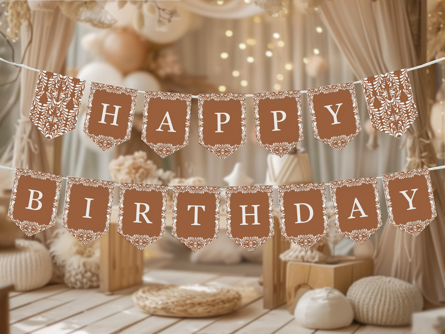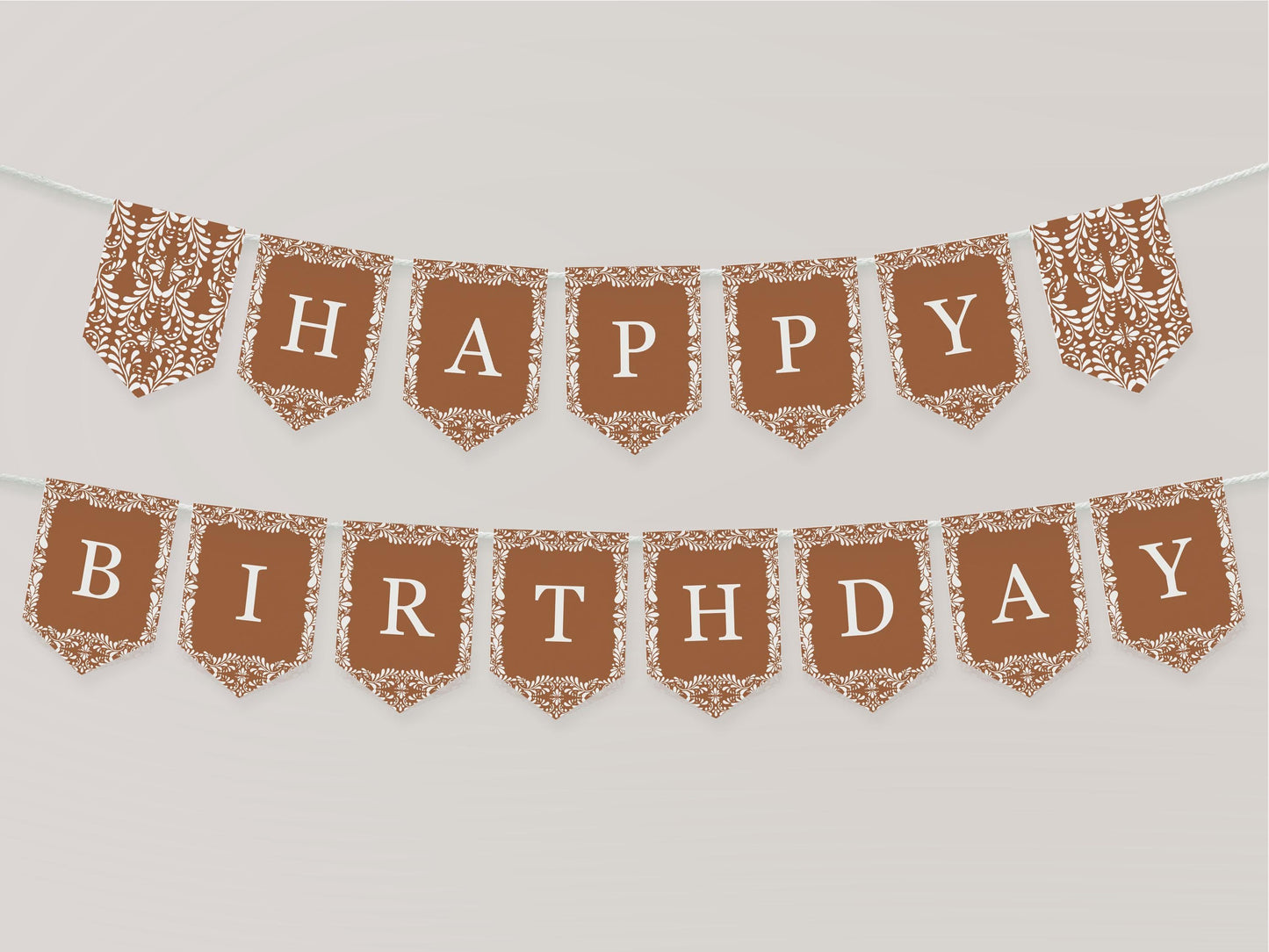 Clay Talavera Happy Birthday Banner Printable Template, Burnt Orange Spanish Tile Mexican Birthday Fiesta, Terracotta Birthday Party WP1019