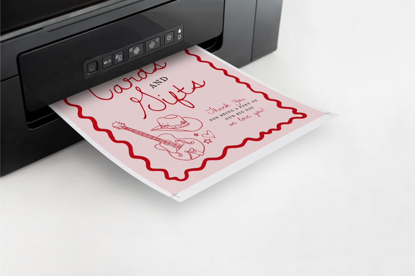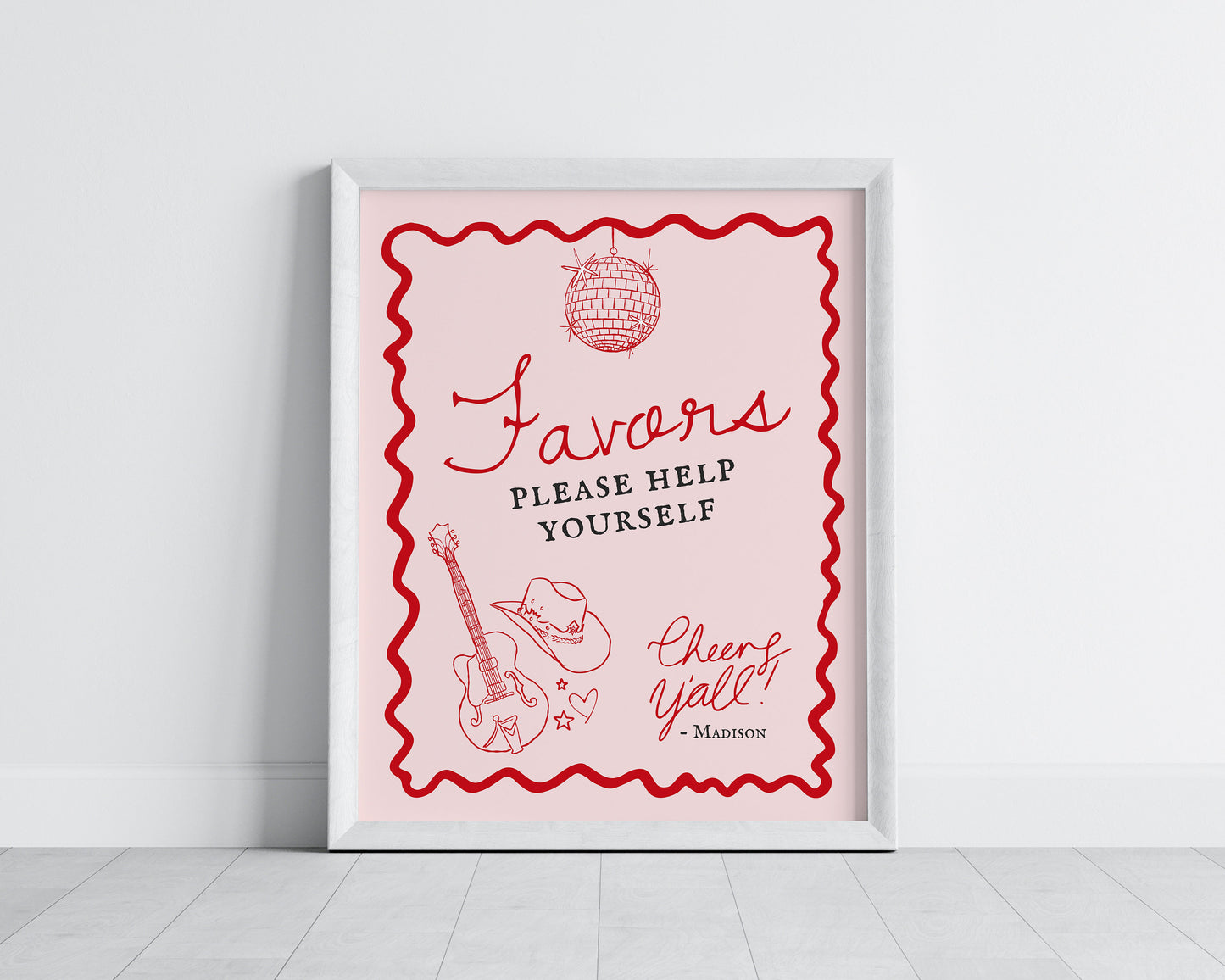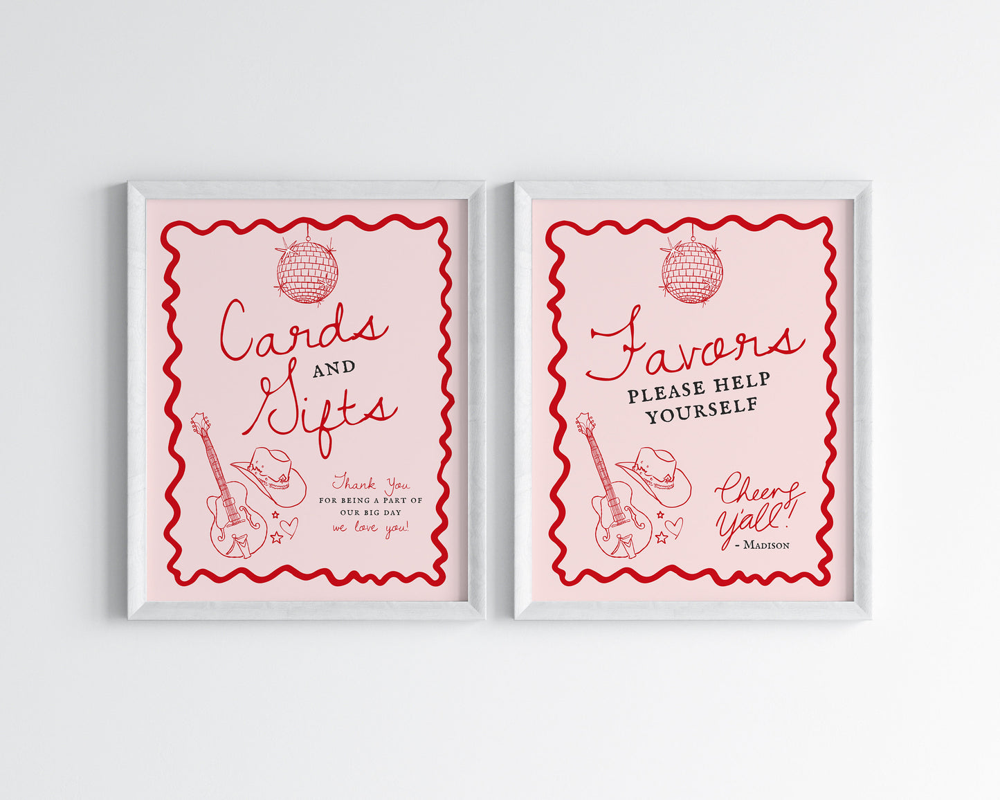 Disco Cowgirl Cards & Gifts and Favors Sign Printable Template, Hand drawn rodeo party decor for Nashville weekend bachelorette party bash