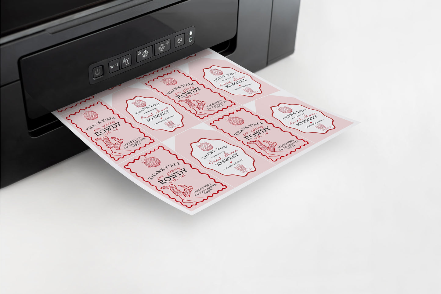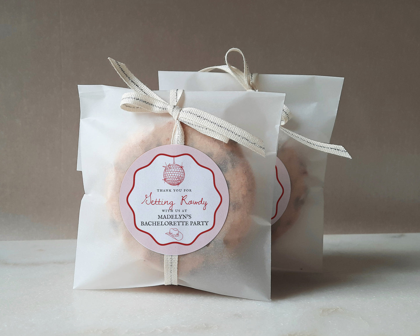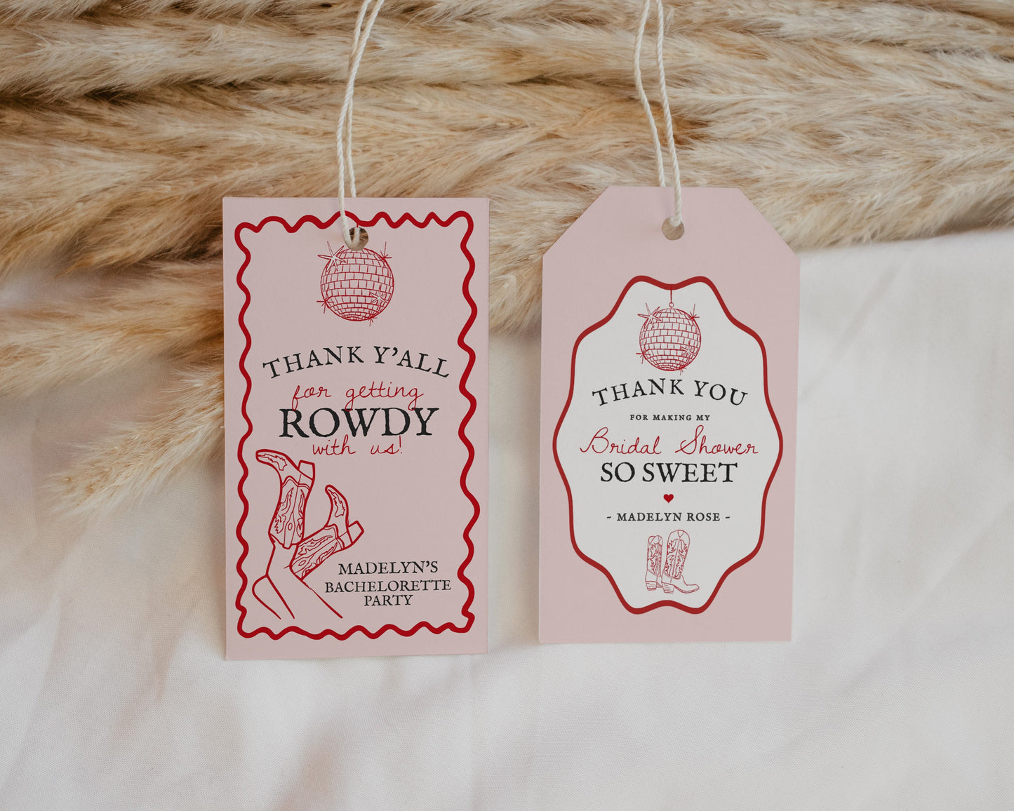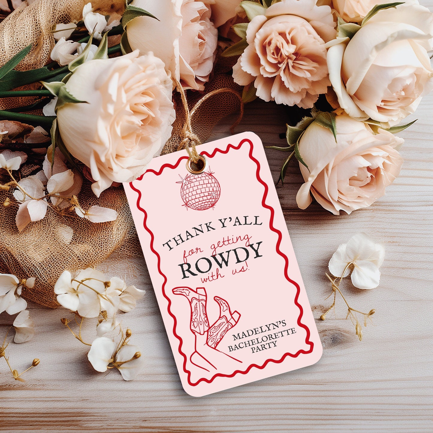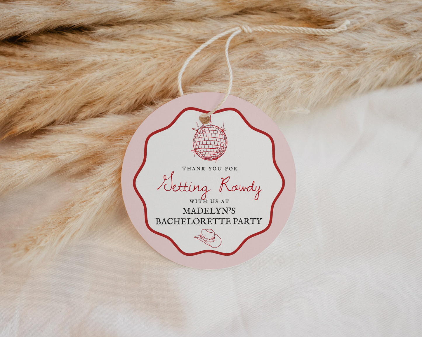 Disco Cowgirl Favor Tags Printable Template, Hand drawn rodeo party decor for Nashville weekend bachelorette party bash, 30th birthday party