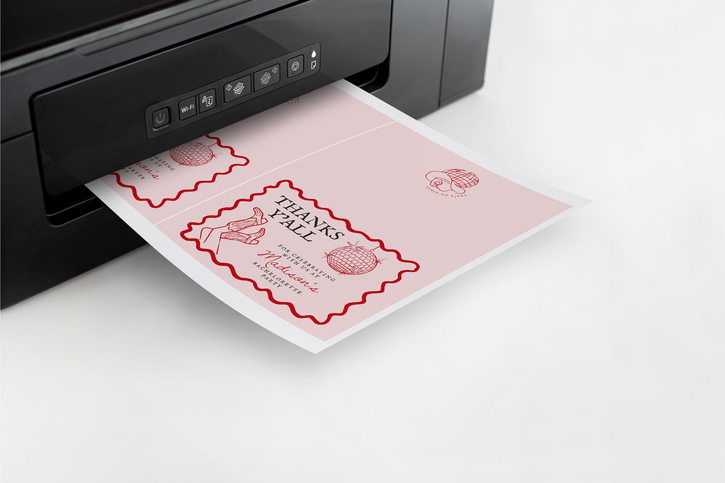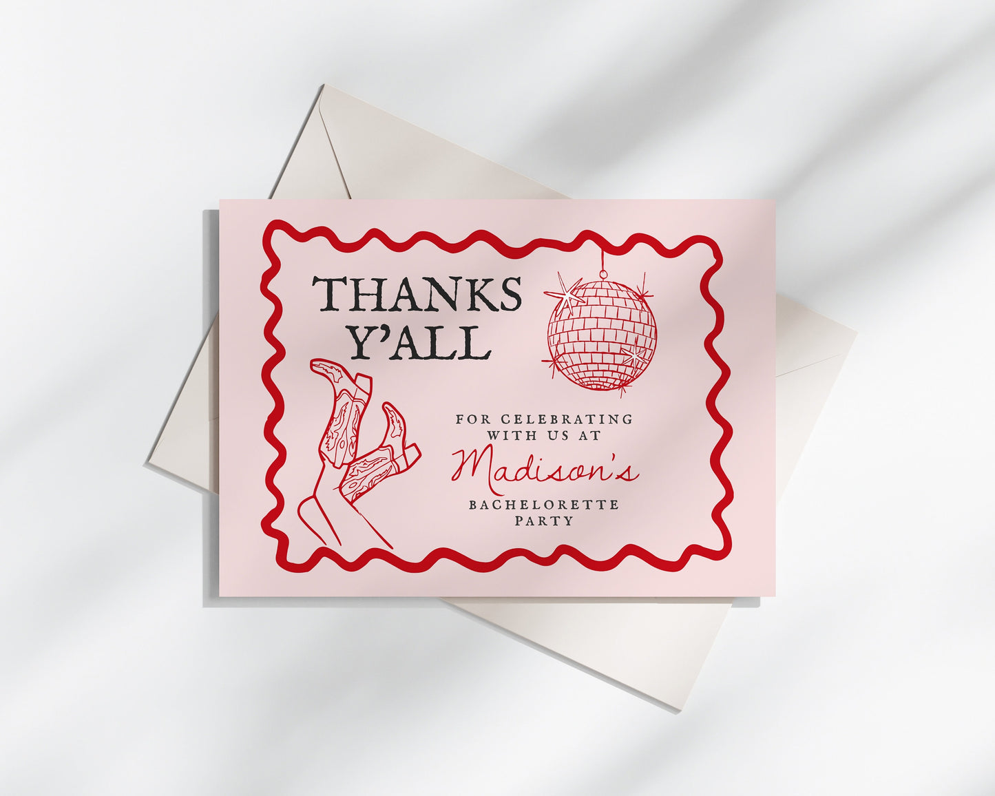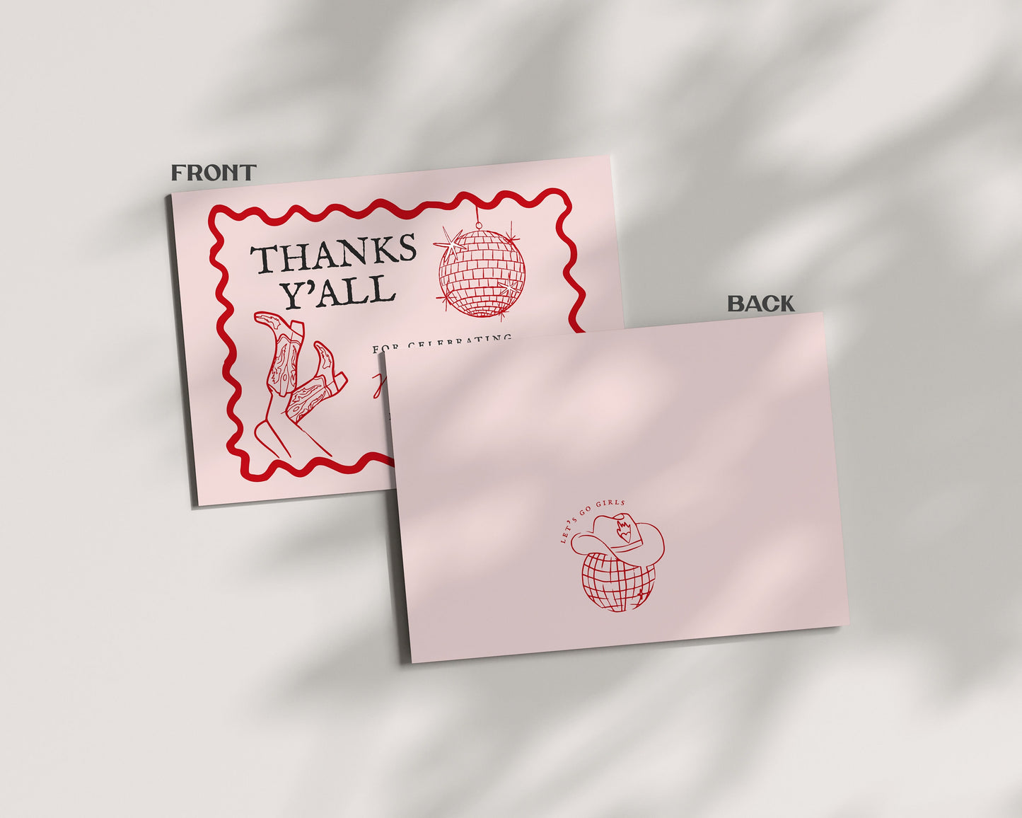 Disco Cowgirl Thank You Card Printable Template, Hand drawn rodeo party decor for Nashville weekend bachelorette party bash