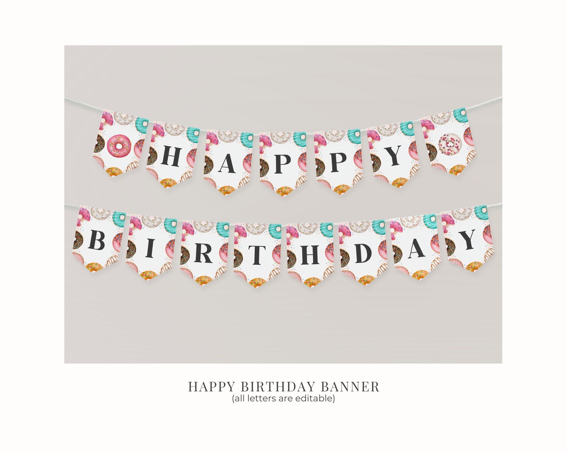 Sprinkled Donut Birthday Banner Printable Template